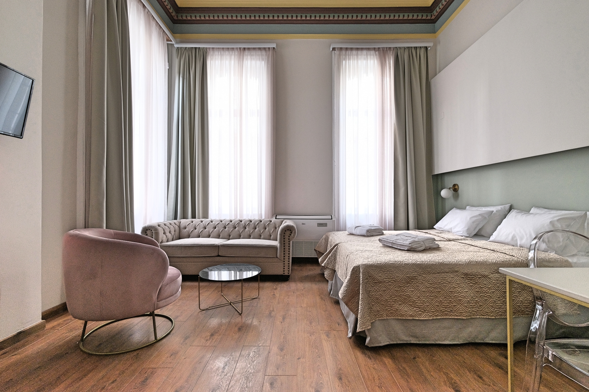 Agora Residence offers contemporary, non-smoking rooms with modern amenities, a shared lounge, free WiFi, and a terrace. The 19th-century mansion is lovingly renovated, combining authentic family vintage furniture with stylish pieces. The on-site Garden Café offers a serene oasis, serving coffee, refreshments, and light snacks. Conveniently located near city attractions, Agora Residence provides a harmonious and comfortable experience for guests seeking a blend of history, elegance, and contemporary charm.