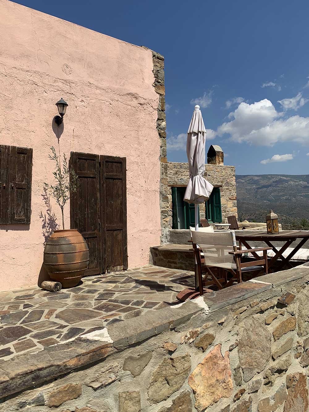Situated in the medieval village of Avgonyma, Pyrgos Houses and Restaurant presents a blend of simplicity, luxury, and traditional charm. The split-level apartments offer rustic décor, modern comforts, and spacious terraces with enchanting forest and sunset views. Indulge in homemade local dishes at the adjacent restaurant, or explore the nearby beaches and Chios Town just a short drive away.