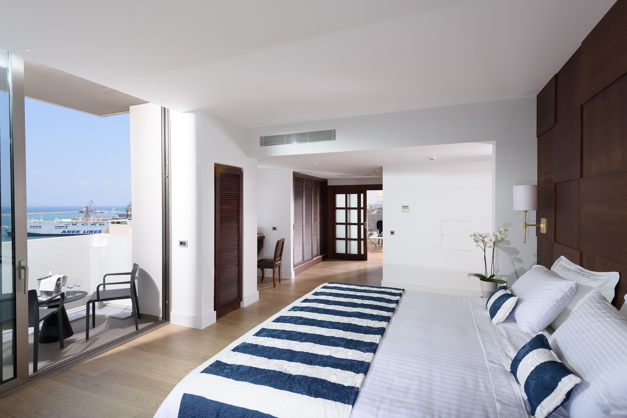 DOM Boutique Hotel, located in the heart of Heraklion, combines modern sophistication with a nod to the city’s Venetian heritage. The design emphasizes minimalist elegance with clean lines, muted tones, and luxurious finishes. Rooms feature expansive city views, plush bedding, and well-appointed private bathrooms. The hotel’s rooftop terrace and bar create an inviting space for guests to unwind with a drink while overlooking Heraklion’s skyline. A daily breakfast buffet offers a variety of American and vegetarian options, reflecting the hotel’s attention to fresh, locally sourced ingredients. Nearby attractions include the Archaeological Museum and Venetian Walls, offering guests an immersive cultural experience. Perfect for travelers seeking a stylish retreat with easy access to Crete’s historic landmarks.