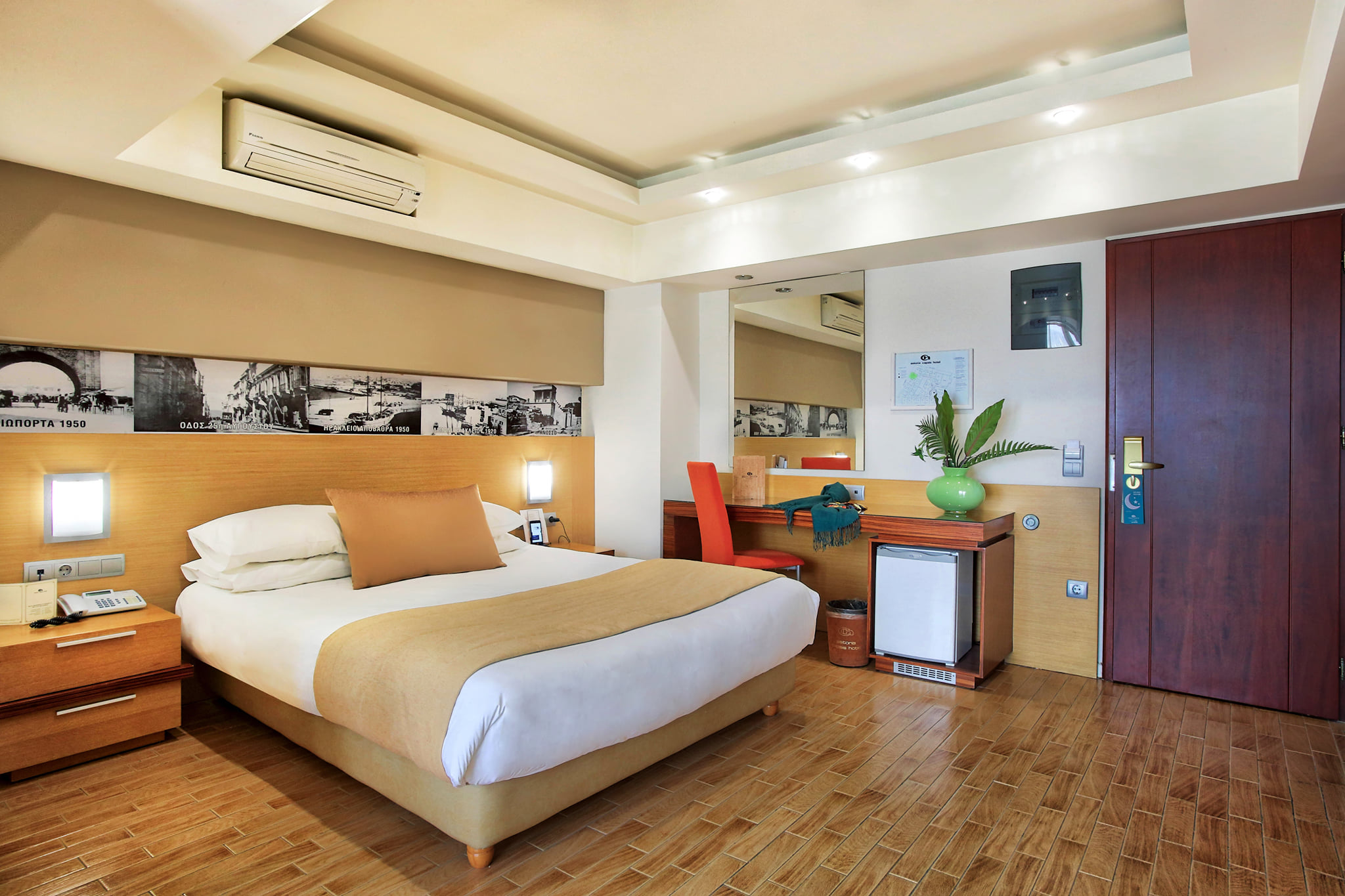 Capsis Astoria Heraklion offers a sleek and contemporary stay in the city’s vibrant center, directly adjacent to the Archaeological Museum. Its modern rooms are designed for comfort, and the rooftop pool provides stunning views of Heraklion. For dining, Erofilli Restaurant presents a range of Mediterranean dishes, while the Aegean View Cocktail & Food Bar offers refreshing drinks and light fare against a scenic backdrop. Perfectly positioned near major attractions and transport options, the hotel also features business facilities, catering to both leisure and corporate guests with style and convenience.