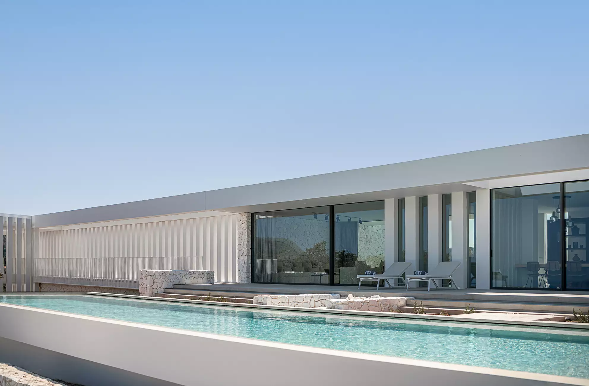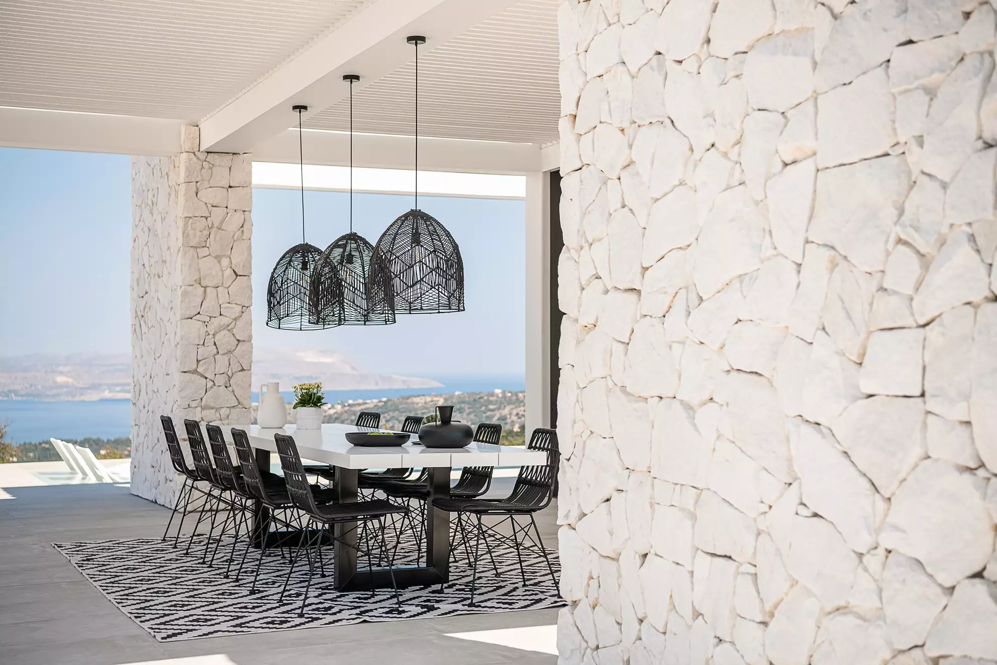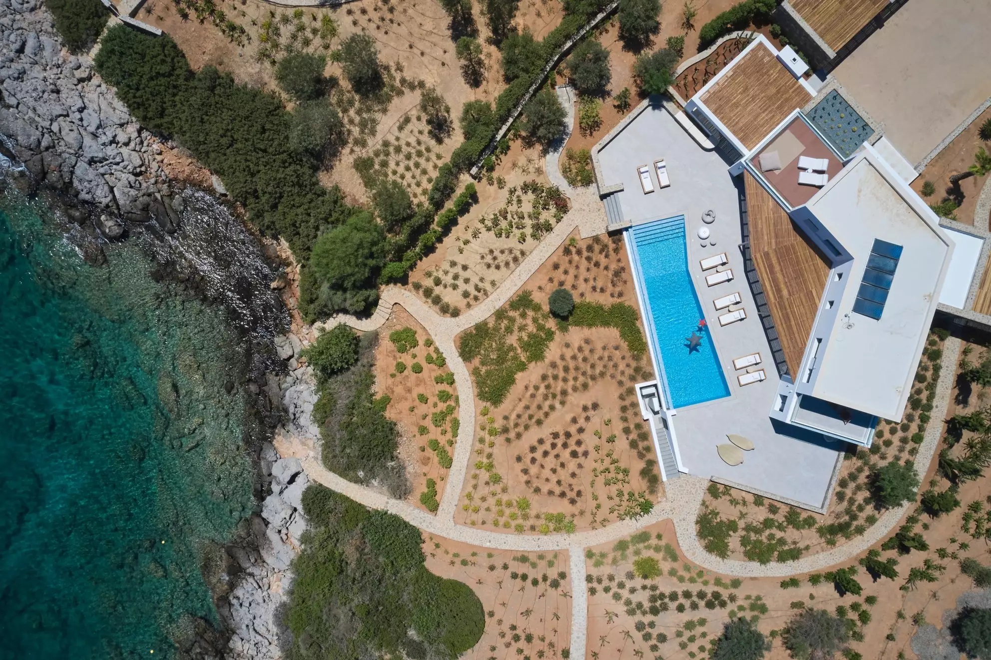 Set against a dramatic, rocky backdrop and looking out to the sea, this villa is perfect for those who cherish modern minimalism, characterized by clean lines, elements like wood, glass and stone and a monochrome color scheme. Flooded with natural light and completely uncluttered, it offers a luxurious sense of Zen-level calm and sophistication.