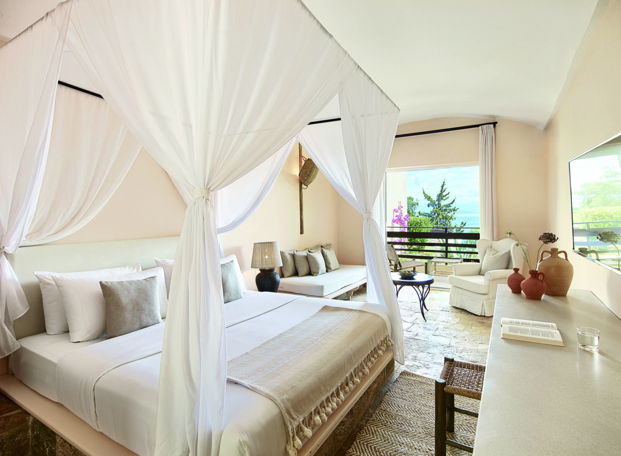 But the contemporary comforts, with large, light-filled rooms facing the Ionian, standout suites, aren’t the main story at Daphnila Bay. It’s the Easter traditions of Corfu that remain central. The atmosphere. The local dress. The food. The anticipation of Resurrection. The island’s natural landscape. These are the things that leave a lasting mark.