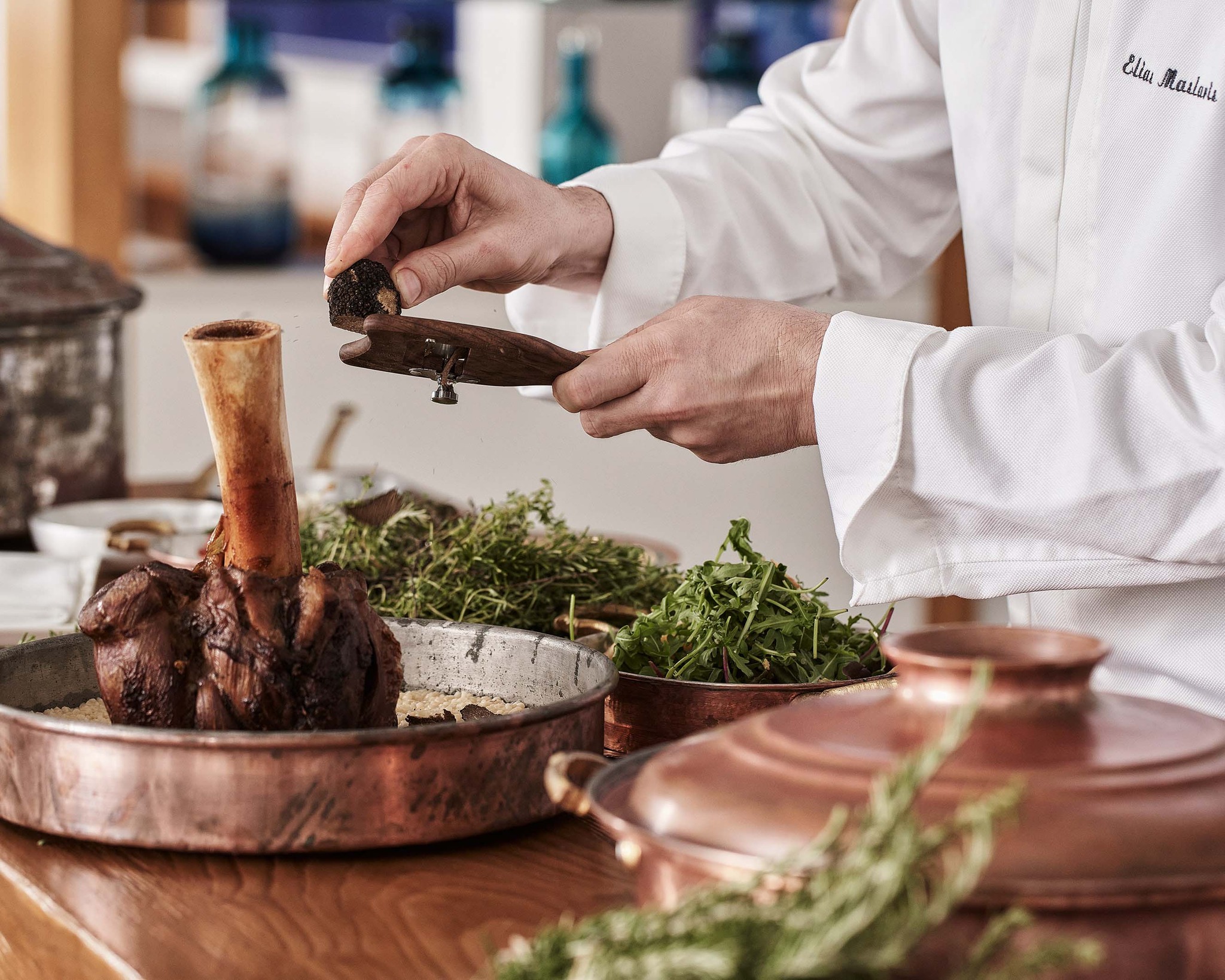 Dining becomes an exploration of Mediterranean flavors under the guidance of Executive Chef Ilias Maslaris, who champions a farm-to-table approach, celebrating local produce and fostering sustainable dining experiences.The culinary team works magic with the freshest local ingredients, including using Delos’s famed fleur de sel, creating dishes that embody the essence of the Mediterranean.