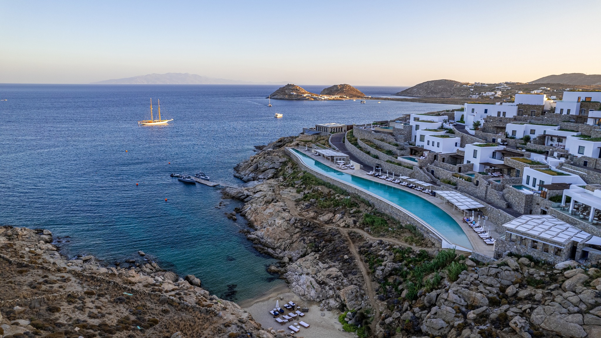 This 5-star boutique hotel, standing above the tranquil beach of Agios Stefanos, combines indulgence with a deep-rooted commitment to conservation, offering a hospitality experience that’s both lavish and mindful.