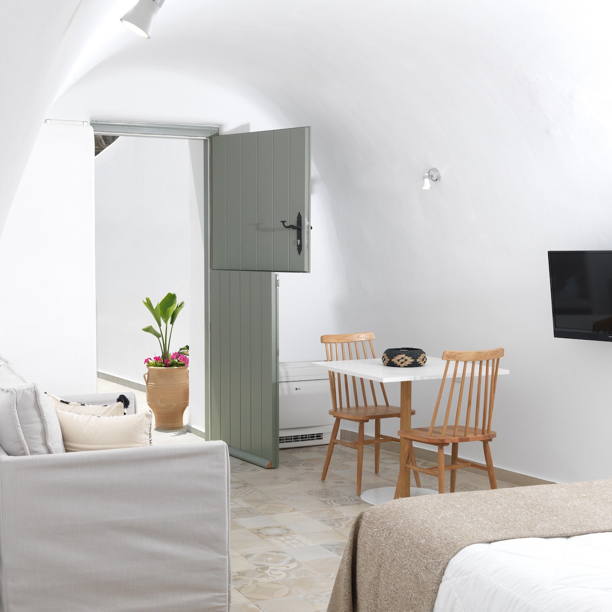 Casa di Namphio Villa & Suites by Drops Collection offers elegant, eclectic accommodations on Anafi island. The secluded estate comprises three suites and a villa, blending local architecture with contemporary and classic elements.