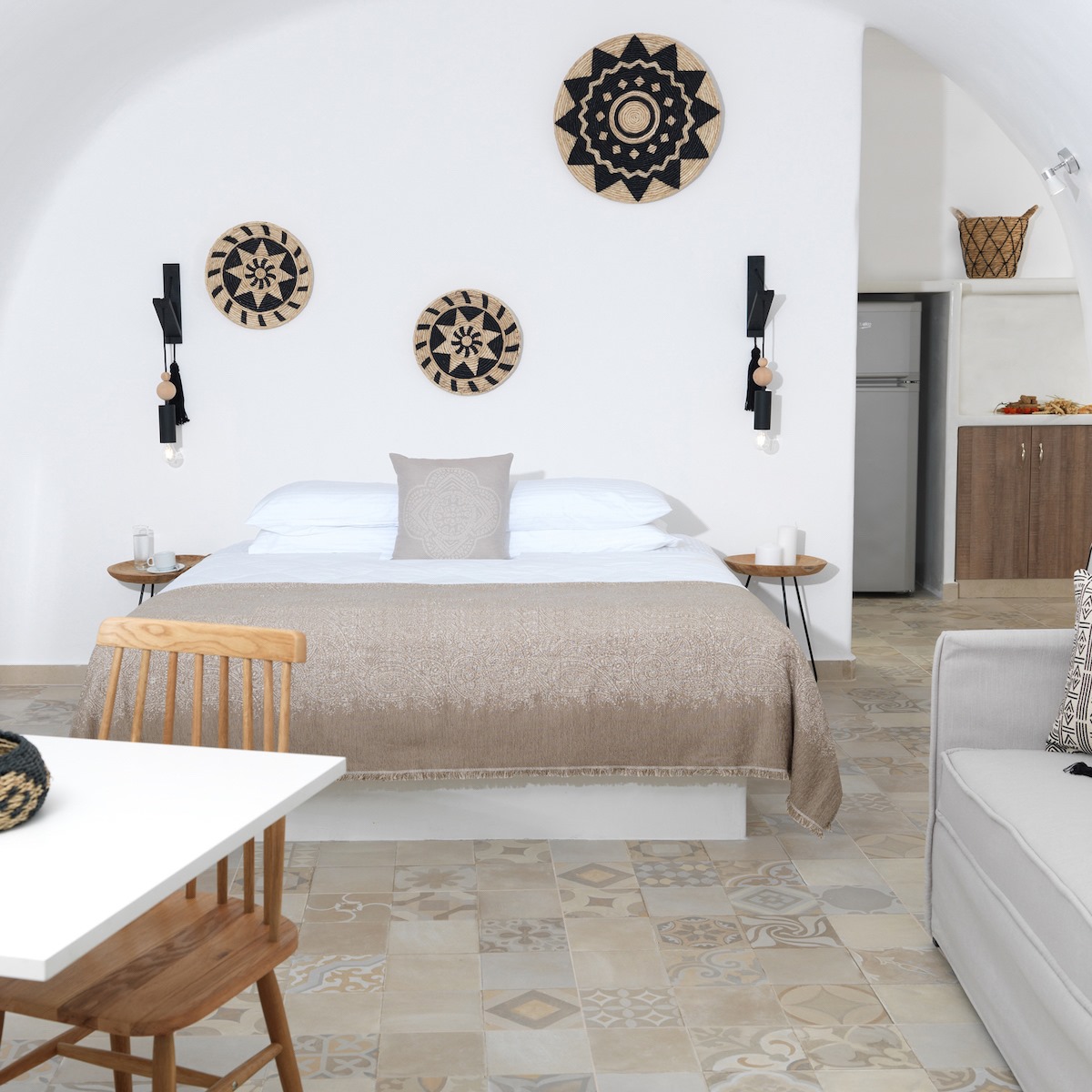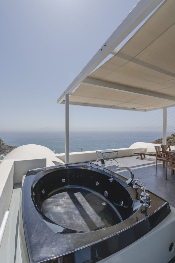 The newly-built Kalamiotissa Apartments, comprising six studios and one double room, showcase traditional Cycladic architecture. The amphitheatric arrangement affords guests stunning views and unique experiences.