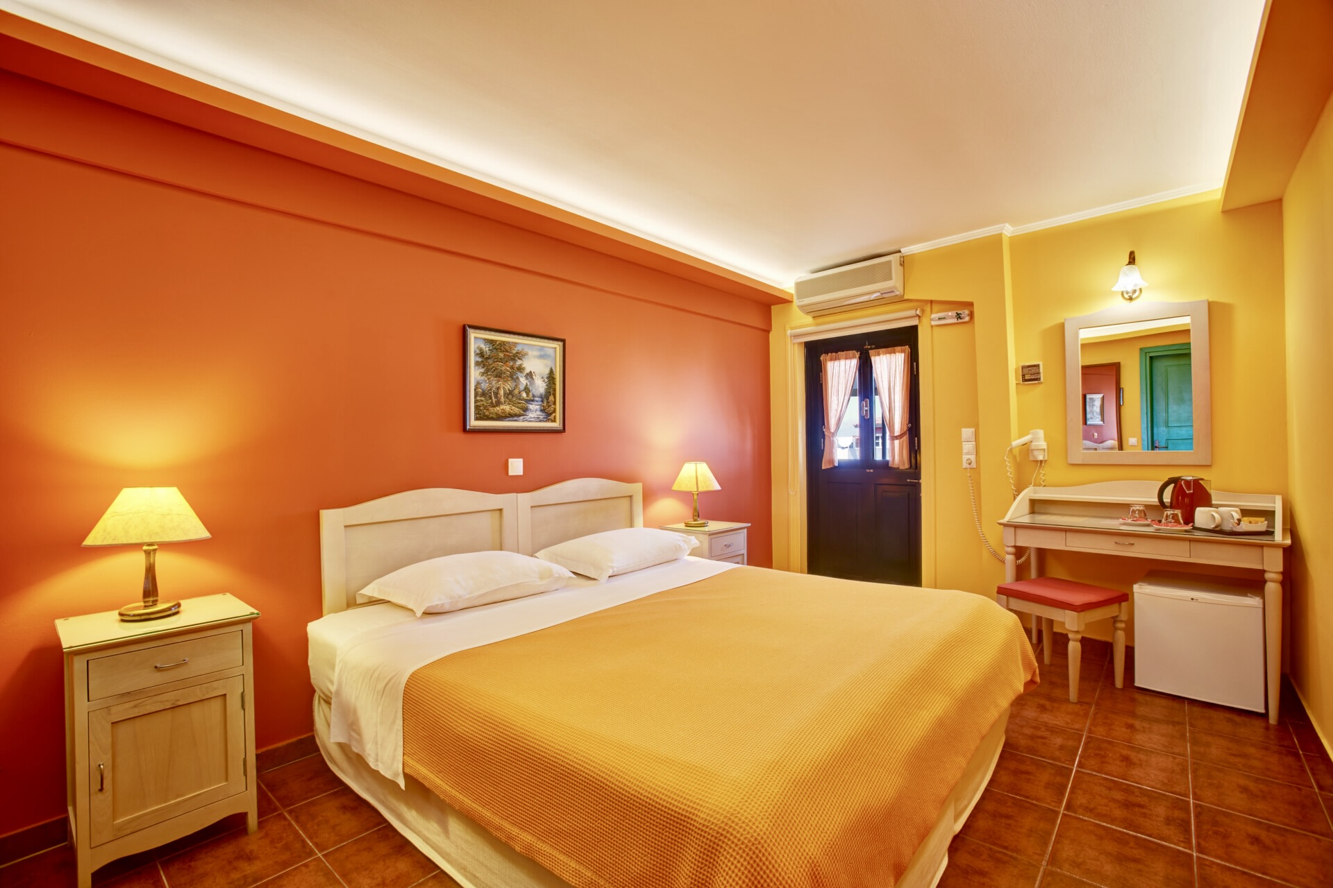 This well-maintained guesthouse seamlessly blends traditional elements with contemporary comforts, ensuring a pleasant stay for all guests. Each room is equipped with modern conveniences while maintaining a cozy, homely feel. The “Chrysippi” suite is particularly noteworthy, featuring a inviting corner complete with a spacious, plush sofa adorned with an abundance of soft pillows – an ideal spot for lounging and unwinding after a day of exploring the historic town.