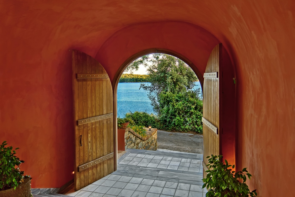A stay at “VILLA VENEZIANO” with its Venetian, monastery-style architecture is simply thrilling. Surrounded by 2000m² of gardens in Perigiali, just 3km away from the cosmopolitan Nidri, across from the world-famous Skorpios, with an unobstructed view of the Prigiponisia, it used to be a home somewhat linked to the famous Onassis family. It was built in 2009 by Russian shipowner Sergei Kauzov, in honour of his ex-wife Christina Onassis, with whom he was married for a year. Many claim that Sergei was one of the few people who truly loved her, and this house was an act of love and loyalty. After Skorpios was sold, perhaps as a symbolic move, the villa was also sold and turned into a wonderful resort within lush vegetation. It comprises of 5 luxury suites, each one named after a member of the Onassis family and after Skorpios (Aristotle, Alexandros, Christina, Athena, Skorpios) and it can either be rented separately, as five different rooms, or as one large private villa. It belongs to the Anatolia Hospitality group, a household name in the hospitality sector.