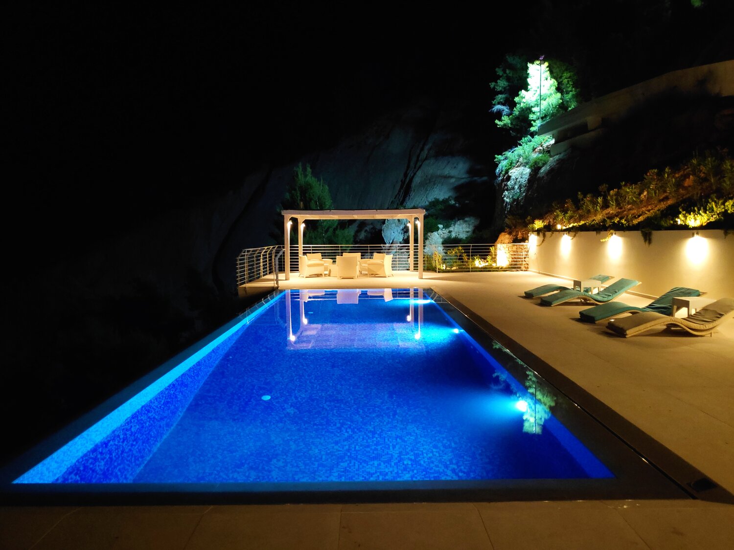 This resort is surrounded by green, almost floating in the air, perched on the edge of a rock, offering amazing views of the endless blue of the horizon and of wonderful sunsets that take the breath away. Located in an exceptional spot, in western Lefkada, near the village Athani, about 35km southwest of town, on the road towards some of the island’s best beaches, like Egremni and Porto Katsiki, “OKEANOS LUXURY VILLAS” is quite unique. Airy, luminous, modern, fully equipped, blending with the natural environment, these 6 villas are a luxurious haven of relaxation. Each villa has a private infinity pool with a pergola and a shaded area, as well as outdoor furniture, sunbeds and an umbrella. Each villa also has a spacious balcony and a living room on the second floor.