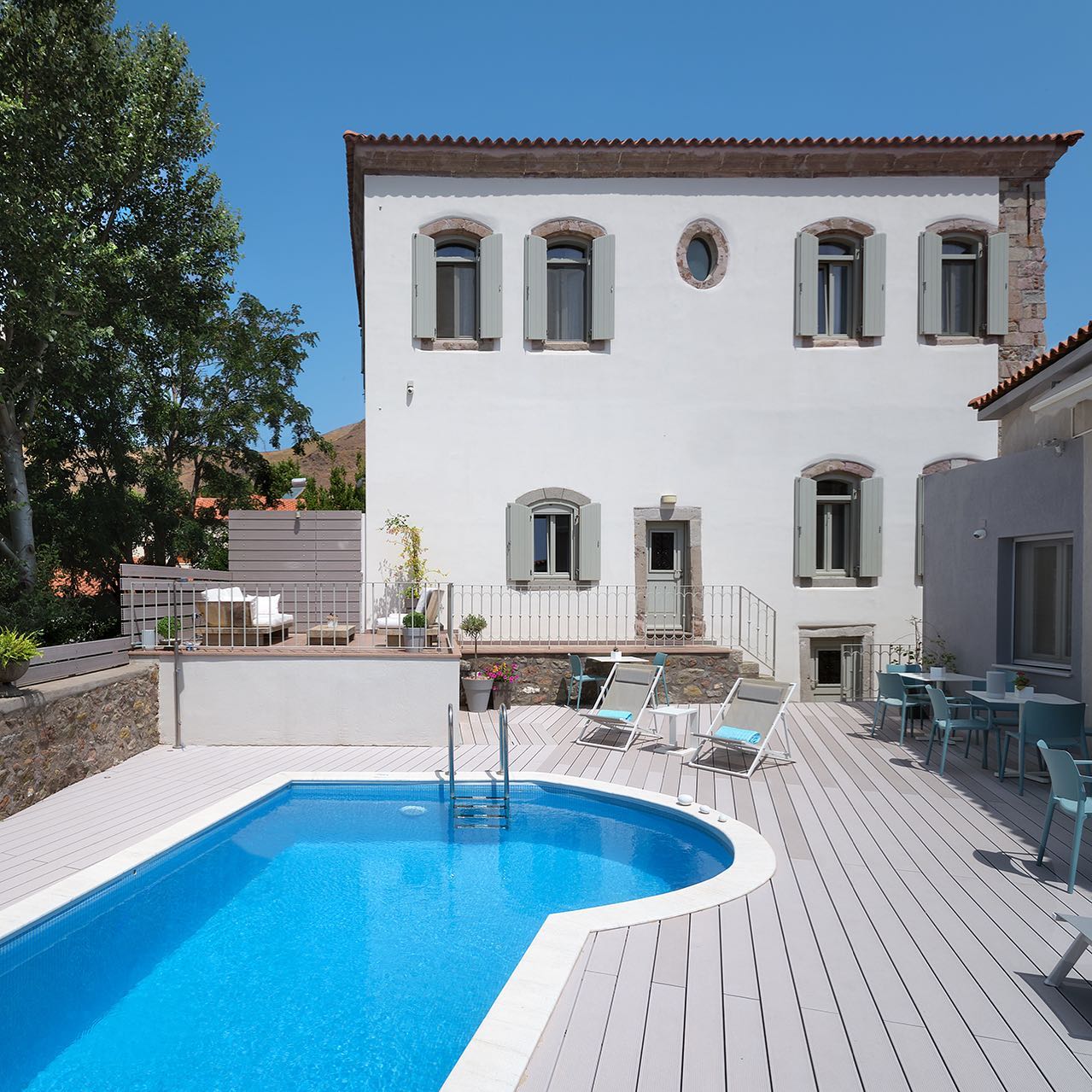 The 4-star Theofilos Paradise Boutique Hotel, just 300m from Tsamakia Beach, offers a blend of elegance and convenience. Housed in a restored 1912 mansion, it offers free Wi-Fi, a rooftop pool, underground parking, and a spa complete with Turkish hammam and sauna. Luxury bathrooms include a hydromassage shower or bathtub. The hotel, nestled in the heart of old Mytilene, is a stone’s throw from the Archaeological Museum and Mytilene Castle. A stay here feels a bit like time travelling with all modern comforts.