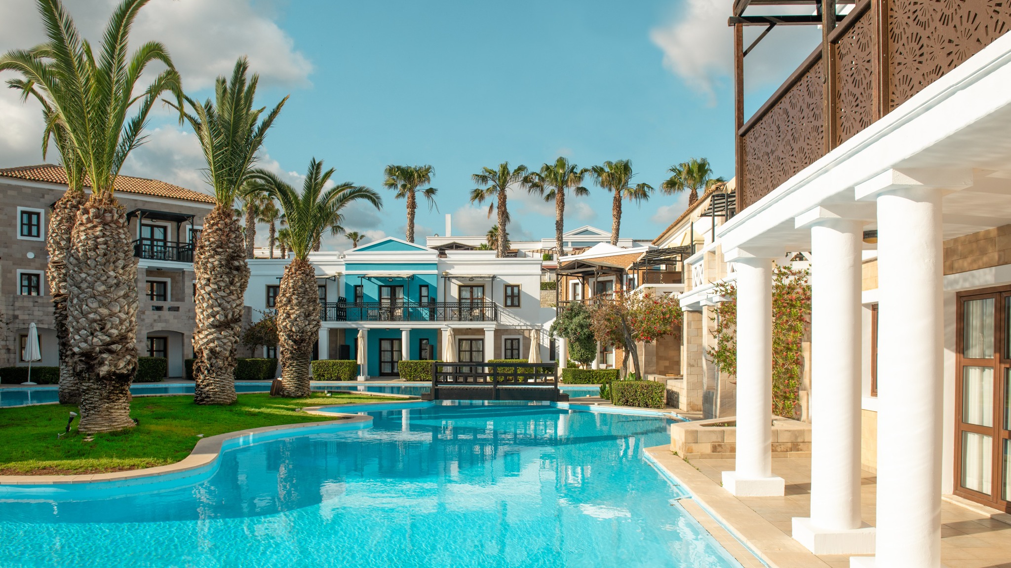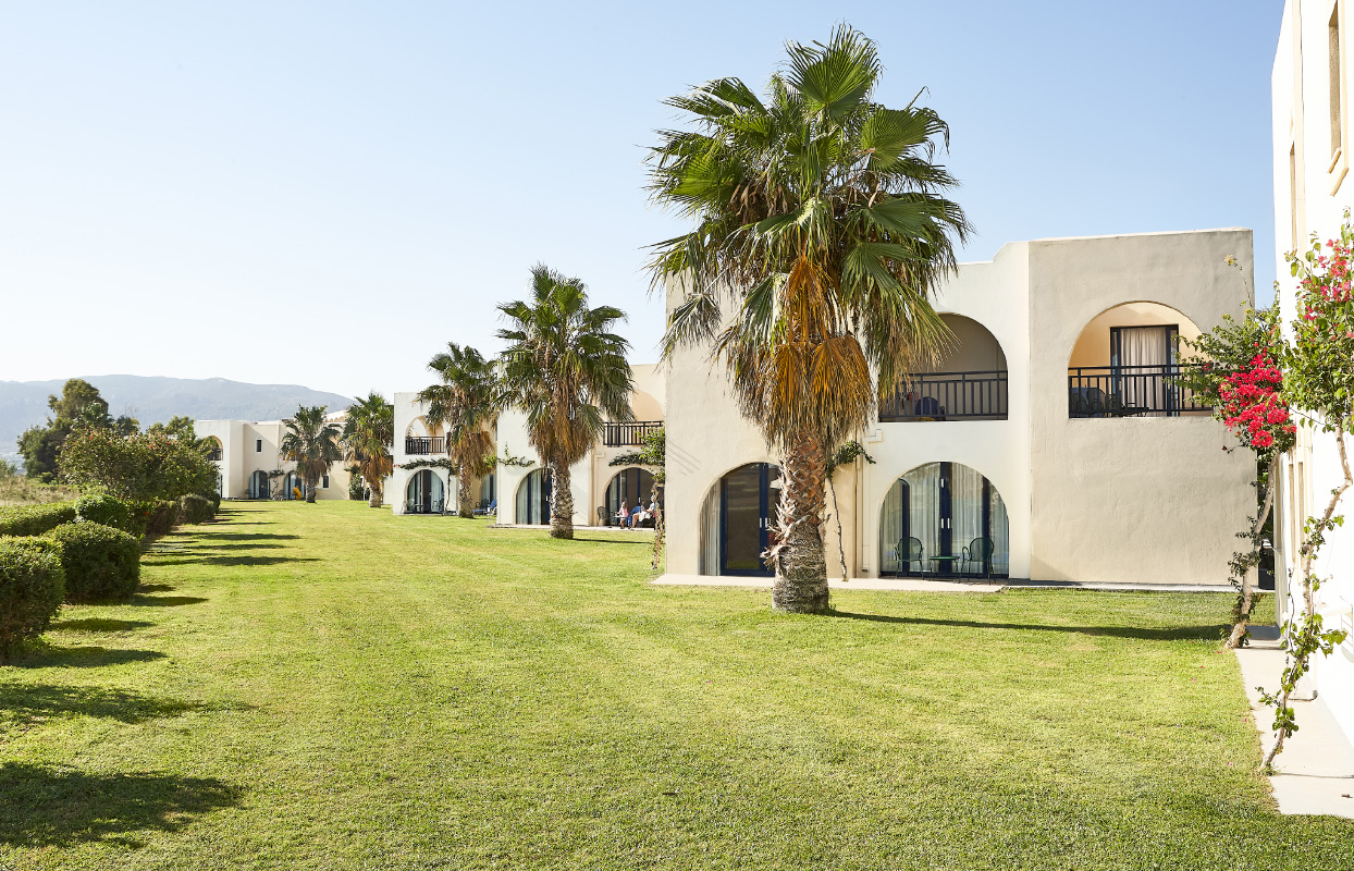 Family-friendly hotel, all-inclusive, on the sea. It is divided into “neighbourhoods” with squares in the centre, where there are various restaurants. The decorative style of the hospitality areas is bohemian. There are 131 rooms and 137 bungalows. Services include yoga, water sports, and a gym. (OCU Kos )