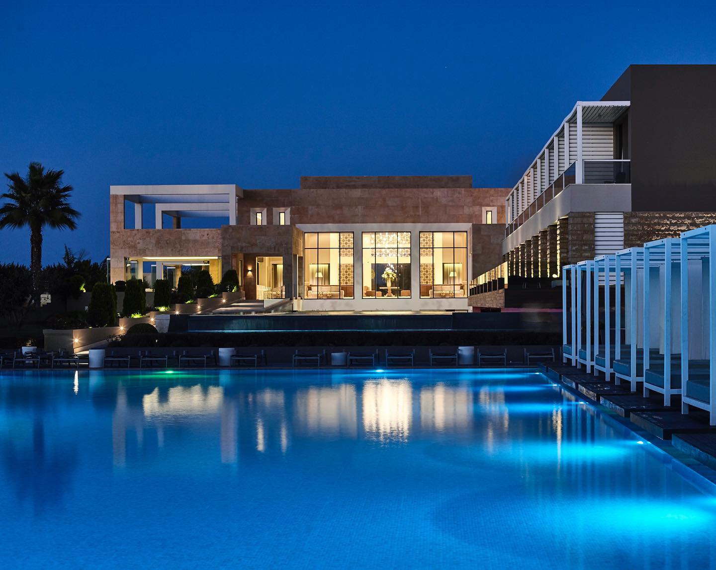 The luxury hotel near the sea has rooms, bungalows, maisonettes and villas with private pools and gardens. There are outdoor and indoor pools, the excellent Elixir spa, and special free menus for children. There are many options for adults only, both on the beach and in the dining areas. There are other restaurants with menus from different world-cuisines, as well as a wine cellar with 100 fine wines. The Fire Verandas in this luxury hotel are the place for the best gourmet options, signature cocktails, and views of the exotic backdrop of palm trees and the sea.