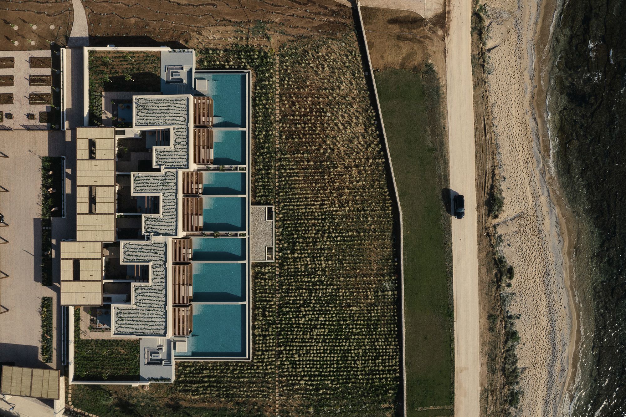 The concept of slow living was developed in collaboration with Vasilis Bartzokas and the Design Ambassador, following an invitation from the architect. “The branding and positioning of the hotel was based on design principles that are none other than total relaxation, disconnection and tranquillity, the enjoyment of nature at a slow pace, which is what the potential visitor of such a hotel desires”, observes Vasilis Bartzokas. The hotel’s logo, website, content and communication strategy reflect the concept, while the new services are also developed according to it. These include al fresco private dinners with ingredients from the hotel’s organic garden and floating breakfasts on the waters of each private pool. “The original brand image and the corresponding value proposition are crucial to the success of a project. The hotel’s identity is clear, based on the owner’s vision and the work of the architect. It is the right narrative that can convey the message to the right audience,” adds Vasilis Bartzokas.