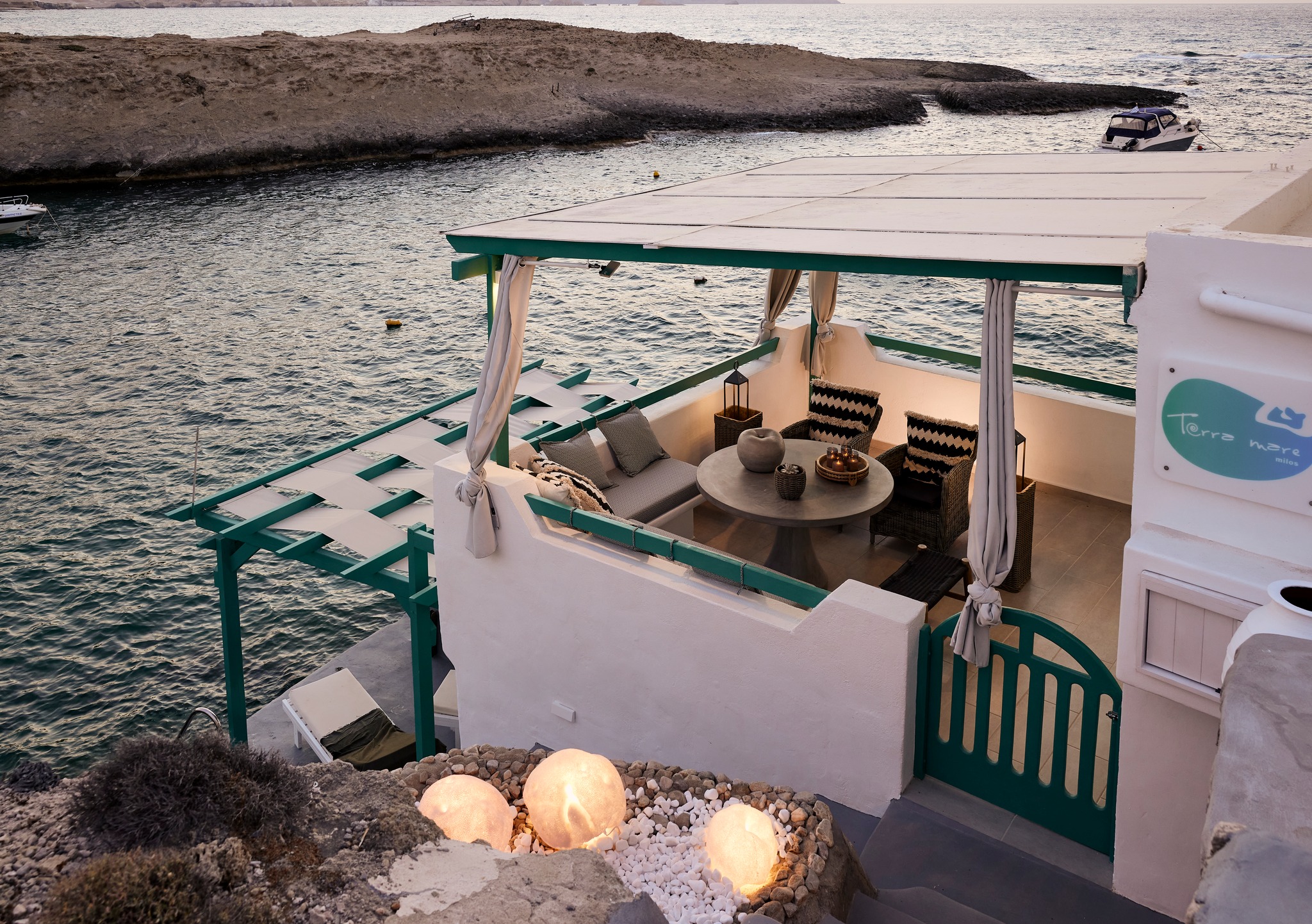 A boutique retreat in Milos that feels as if it’s suspended above the sea, with rooms built directly on an old fishermen’s pier that blends understated luxury with Cycladic authenticity. Its two light-filled suites feature private kitchens, modern comforts, and unobstructed Aegean views. Guests can step straight into the water from the terrace, enjoy breakfast by the waves, or unwind on the balcony overlooking the white lunar landscape of Sarakiniko. With thoughtful details, natural textures, and a serene setting away from the crowds, it’s a dream hideaway for couples or small groups.