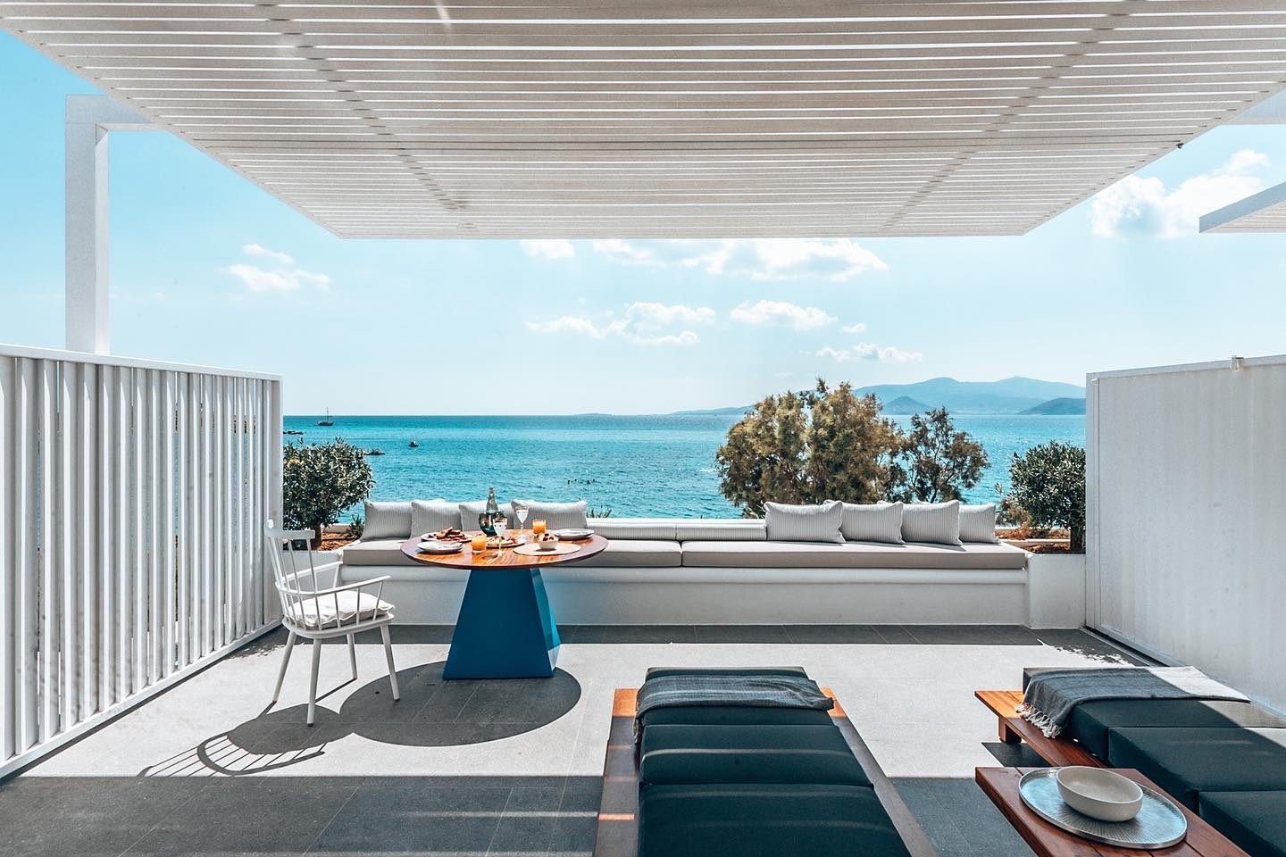 Just steps from the shoreline and with the ancient Portara looming in the near distance, this modern cluster of suites offers a front-row seat to Naxos’ most iconic sunset. Interiors are clean and minimalist, with pale woods, soft lighting and discreet kitchenettes. Each suite opens onto a private balcony or terrace—some with hot tubs, all with unfiltered sea views. The location balances calm with access: Naxos Town is just a short walk away. Staff keep things relaxed but efficient, arranging everything from transfers to restaurant bookings. Perfect for travellers who want to keep the beach and the buzz equally close.