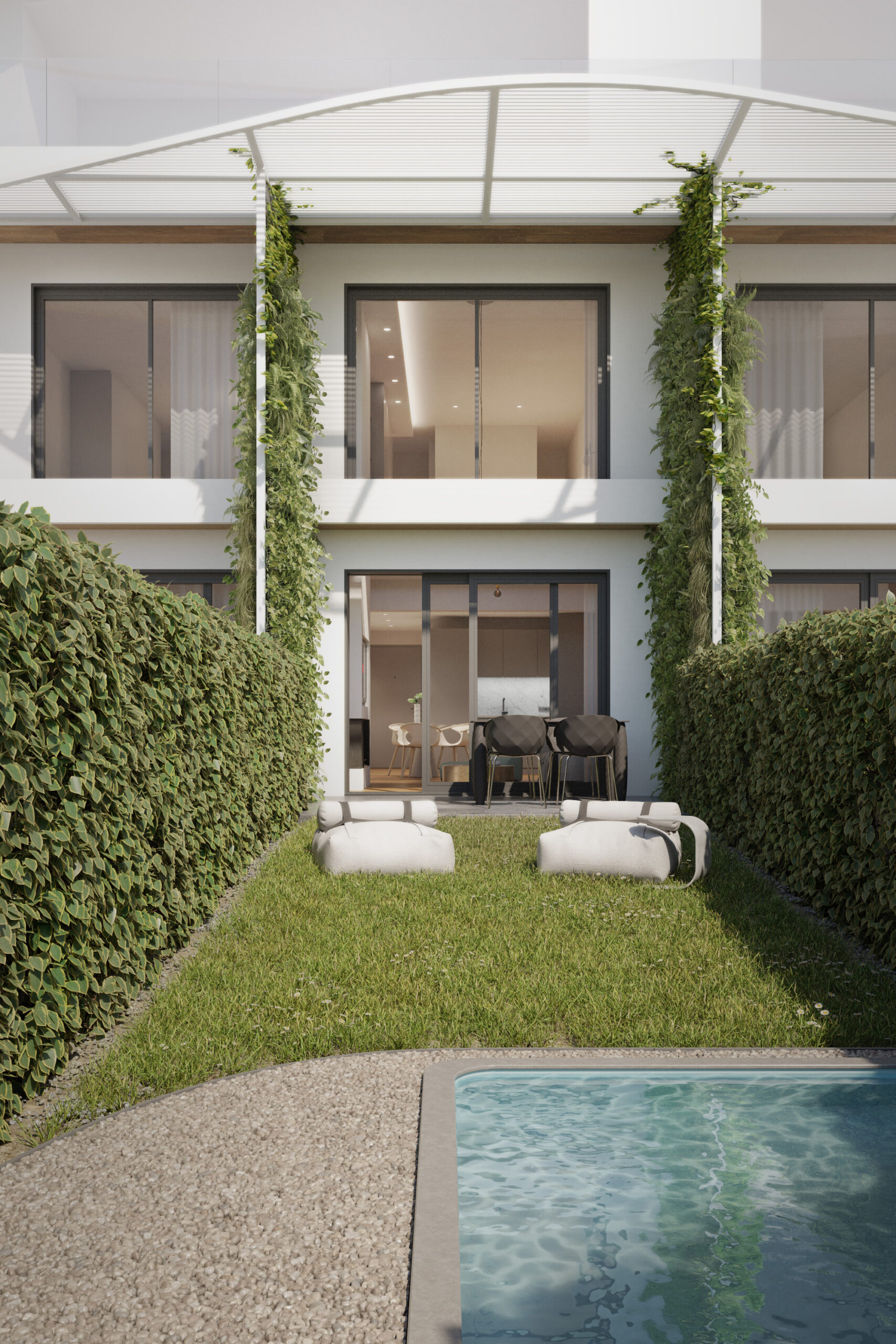 The aim of the design was, apart from giving an aesthetically pleasing result, to apply an architectural design that would provide holistic solutions in areas like health and well-being, bioclimatic innovation, ecological materials, construction methods, water and waste management.
