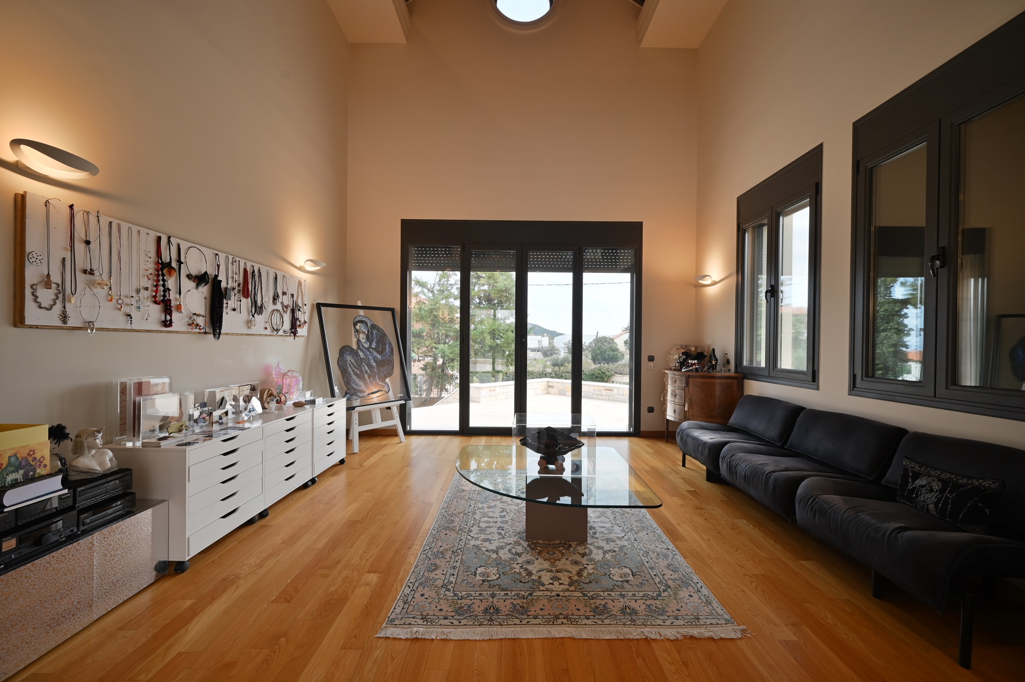 Built in 2015, this two-storey villa of 600sqm is located in the centre of Pikermi. The villa consists of 4 bedrooms, 3 living rooms, 3 kitchens, 5 bathrooms and 1 WC, while it also features 4 parking spaces. It is offered partially furnished, as the property comes with handmade furniture that has been custom made for it.