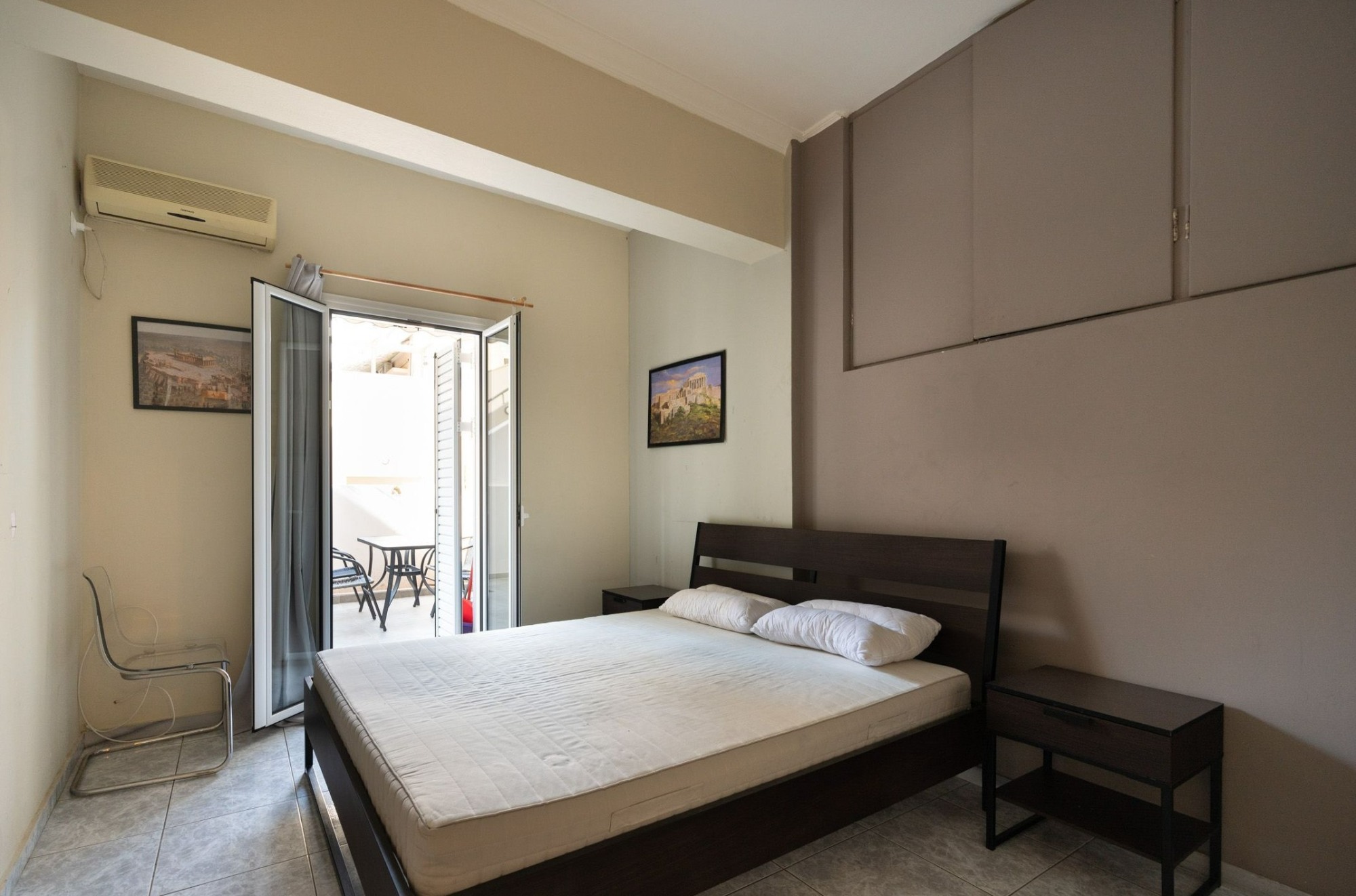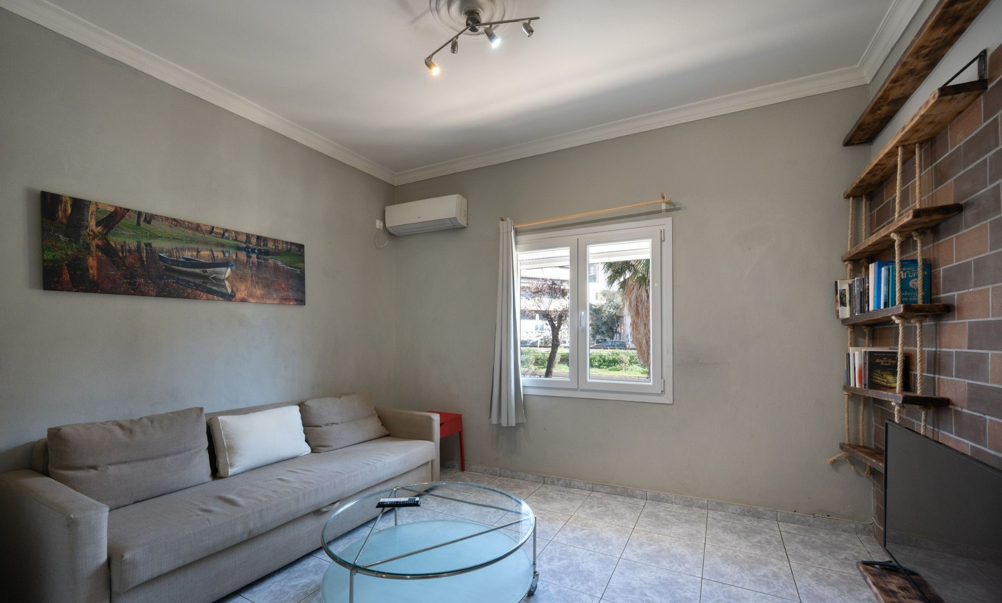 A functional apartment that takes full advantage of every square meter and boasts 2 bedrooms, kitchen, bathroom, living room and balconies. The apartment is suitable for couples or students. It is located in Akadimia Platonos neighbourhood (literally meaning Plato’s Academy), close to theatres, restaurants and a stone’s throw from the historic city centre.