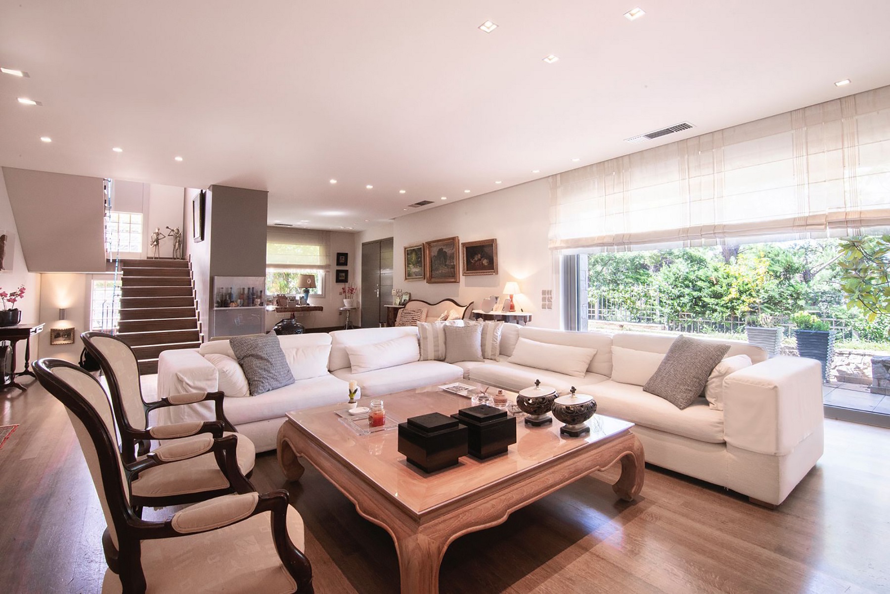 For sale is a luxurious, two-story maisonette in Kifissia, a northern suburb of Athens that is known for its well-planned design and smooth integration of commercial and residential areas. Located 12 km from the center of Athens, Kifissia has a long history of being a desirable place to live, with its location in a valley surrounded by pine trees and close proximity to the Kifisos river making it a popular choice since the Frankish rule in Attica and was a constant choice for summer retreat for the wealthy residents of Athens, Alexandria and Constantinople.