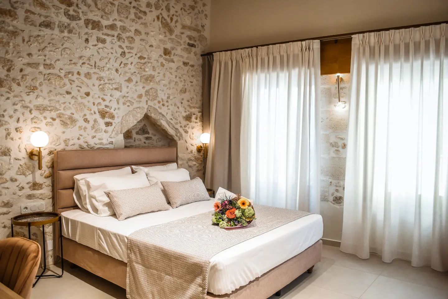 The generously sized, soundproofed apartments offer remarkable views of Rethymno’s old town and the Venetian castle. Each accommodation is equipped with air conditioning, a fridge, and a TV. The friendly staff at Thalassa Boutique Hotel can help with ticket reservations, as well as car, motorbike, and bicycle rentals. A 16-hour currency exchange service is also offered.