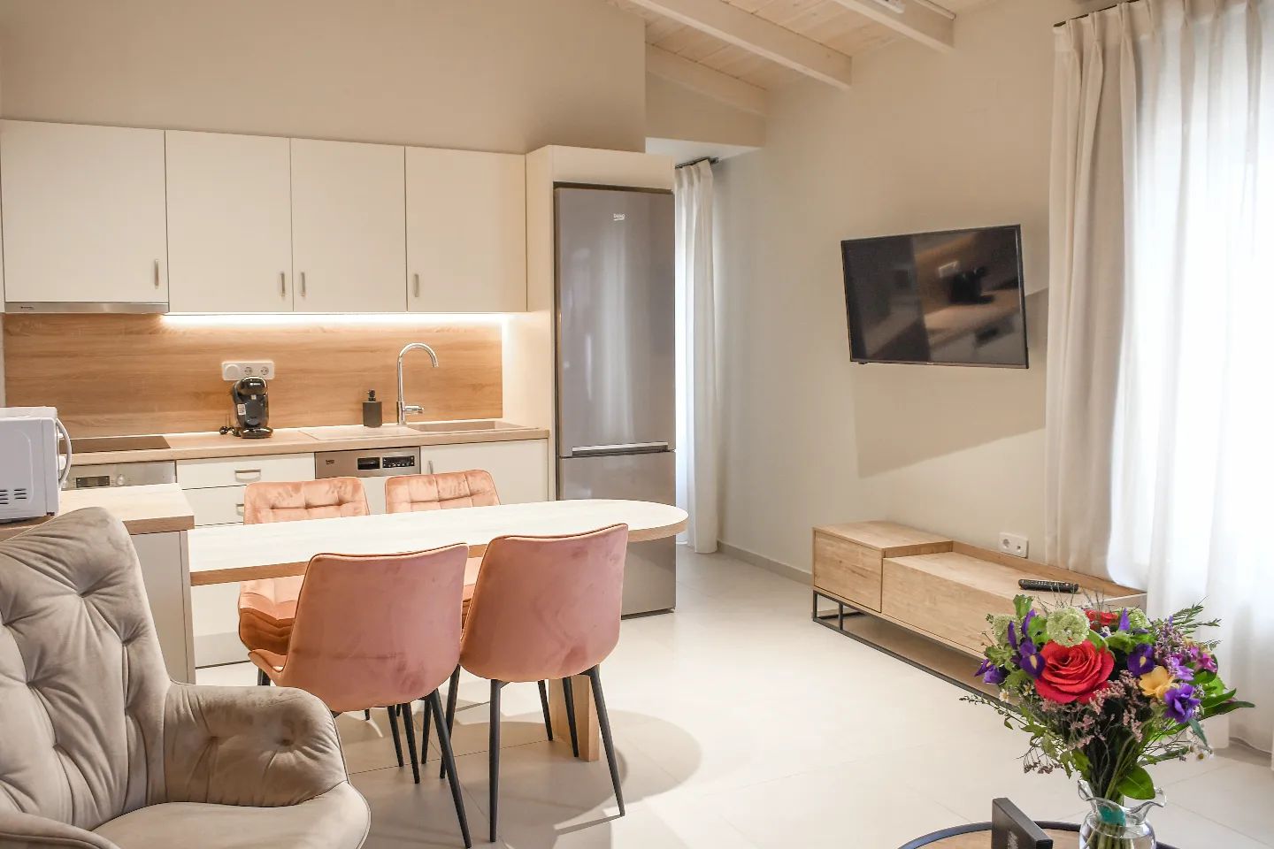 Ionia Suites, located near Rethymno beach, features a terrace swimming pool and a sun deck complete with umbrellas and sun loungers. Guests can enjoy elegant accommodations with kitchen facilities and complimentary WiFi access. Each unit, showcasing classical furnishings, modern details, and neutral colors, is equipped with air conditioning, a TV, and hypoallergenic COCO-MAT mattresses and pillows. The well-appointed kitchens come with a microwave and refrigerator, while private bathrooms include a bath or shower and a hairdryer.