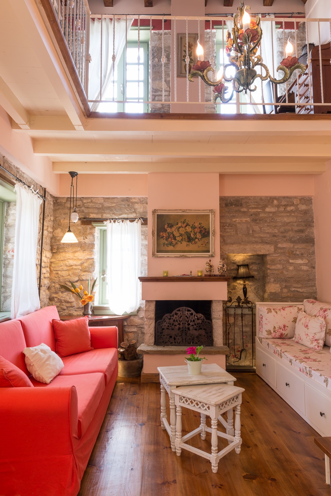 Made distinctive by its crimson colour amongst the stone houses of Ano Pedina, Porfyron has managed to preserve a balance with the building’s history, dating back to 1850. The building originally served as a private residence, hosting, for many years, a prominent doctor of the region. In 1960, it was converted into a girls’ school, while its present owners, Rita and Giannis, bought the building in dilapidated state. Their extensive revamp effort resulted in a gorgeous and comfortable guesthouse with eight rooms, most with fireplaces. The facility is filled with history, which is further highlighted by the choice of furniture and decorative elements, all old-style. A French map from the mid-19th century, at the guesthouse’s main interior staircase, is impressive. Both Rita and Giannis prepare delicious dishes that may be enjoyed for breakfast or as meals. Giannis oversees the menu, which is revised daily and includes vegan selections. Ano Pedina, +30 2653071579, porfyron.gr