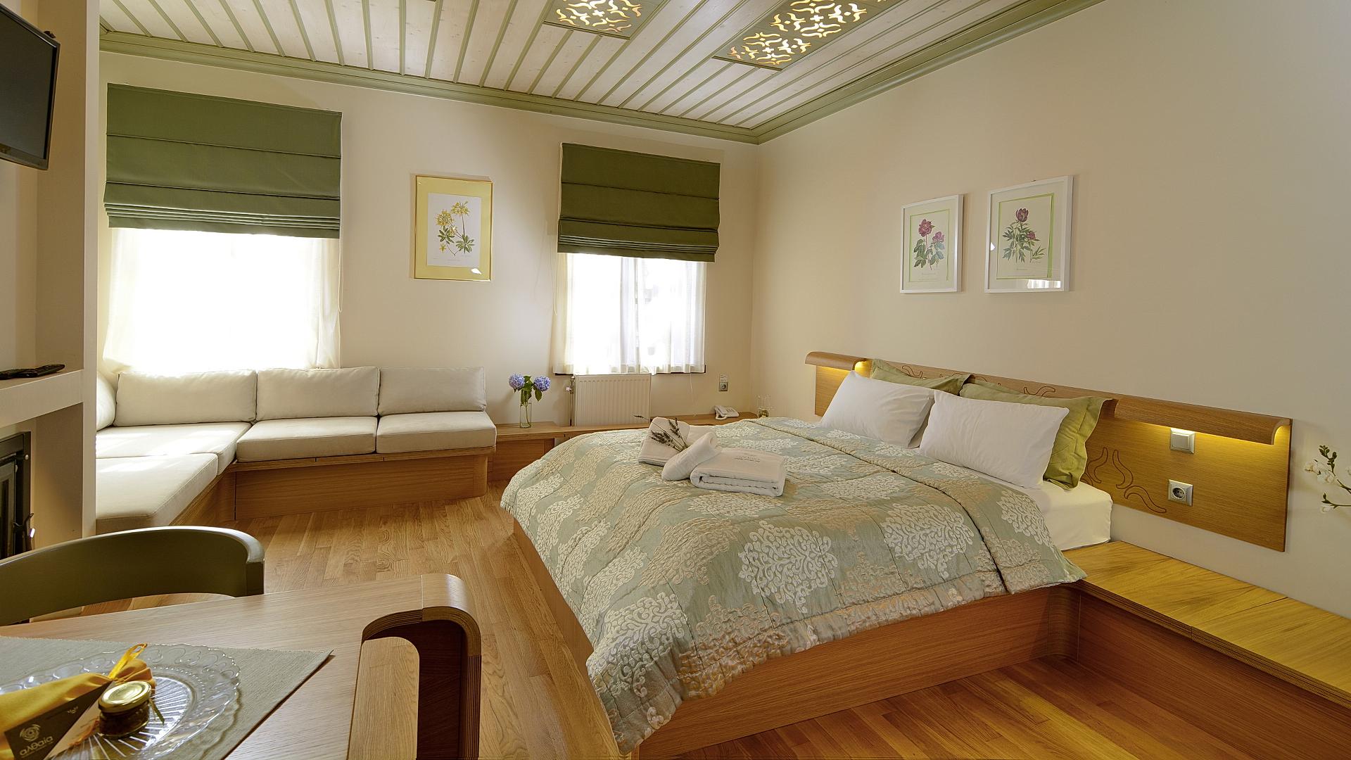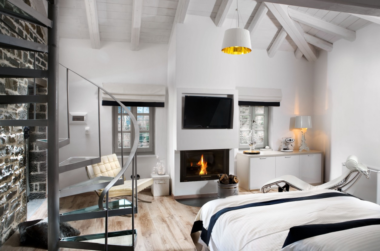 Located at Monodendri, one of the most impressive Zagori villages, MountGrace Suites & SPA is made special by its eco-friendly principles. This guesthouse, a European-style luxury chalet, includes eastern touches, offering particular elegance. It is spread over two separate buildings and offers choices between Superior and Junior Maisonettes. An assortment of furniture and upholstery styles, from modern and minimal to vintage, corduroy and velvet, offers a contrasting colour range that helps turn this accommodation stay into an experience. Handwoven rugs and fireplaces complete the setting, while the imposing hotel lobby offers a memorable welcome. Monodendri, +302653072021, 2653071111, mountgrace.gr
