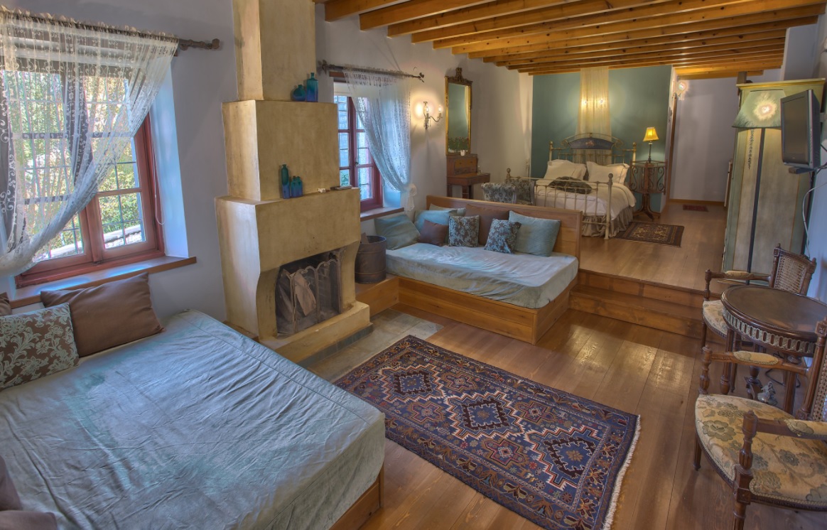 Bagia Exclusive, at the village Kipoi, offers a fantastic view of the triple-arch Kalogeriko bridge. The guesthouse was built in accordance with the area’s traditional architectural style, incorporating wood and stone elements that recreate the charm of old Bagias, as Kipoi was formerly known, when it was the head village of Zagori. Bagia Exclusive offers spacious rooms for two or three persons as well as luxury suites with hydro-massage facilities. Most rooms have their own fireplace. Kipoi, +30 2651023999, https://bagiaexclusive.gr/el/
