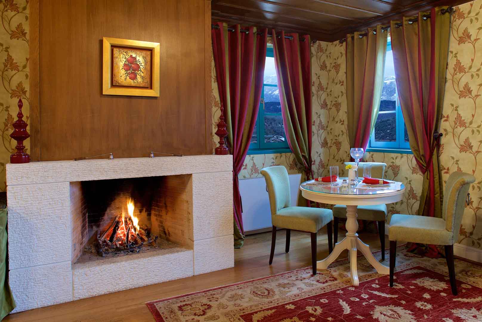 Made distinctive by its crimson colour amongst the stone houses of Ano Pedina, Porfyron has managed to preserve a balance with the building’s history, dating back to 1850. The building originally served as a private residence, hosting, for many years, a prominent doctor of the region. In 1960, it was converted into a girls’ school, while its present owners, Rita and Giannis, bought the building in dilapidated state. Their extensive revamp effort resulted in a gorgeous and comfortable guesthouse with eight rooms, most with fireplaces. The facility is filled with history, which is further highlighted by the choice of furniture and decorative elements, all old-style. A French map from the mid-19th century, at the guesthouse’s main interior staircase, is impressive. Both Rita and Giannis prepare delicious dishes that may be enjoyed for breakfast or as meals. Giannis oversees the menu, which is revised daily and includes vegan selections. Ano Pedina, +30 2653071579, porfyron.gr