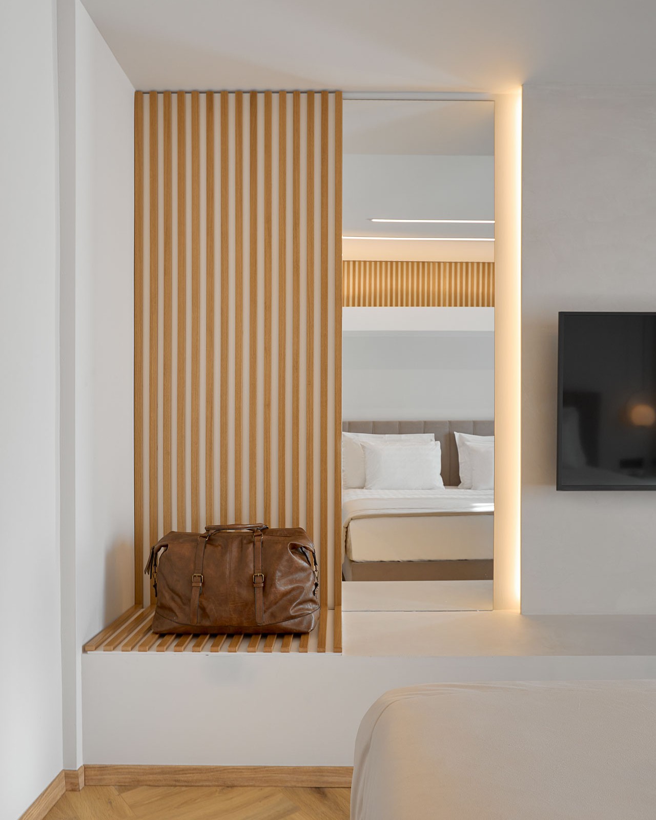 Onoma Hotel brings a quietly playful, tech‑inflected sensibility to Thessaloniki’s hospitality landscape. Its design language leans clean and contemporary, with bright, graphic touches that give the interiors a crisp, urban energy. Technology is woven seamlessly into the stay, allowing for a level of customization that feels intuitive rather than intrusive, and giving the property a distinctly modern rhythm.