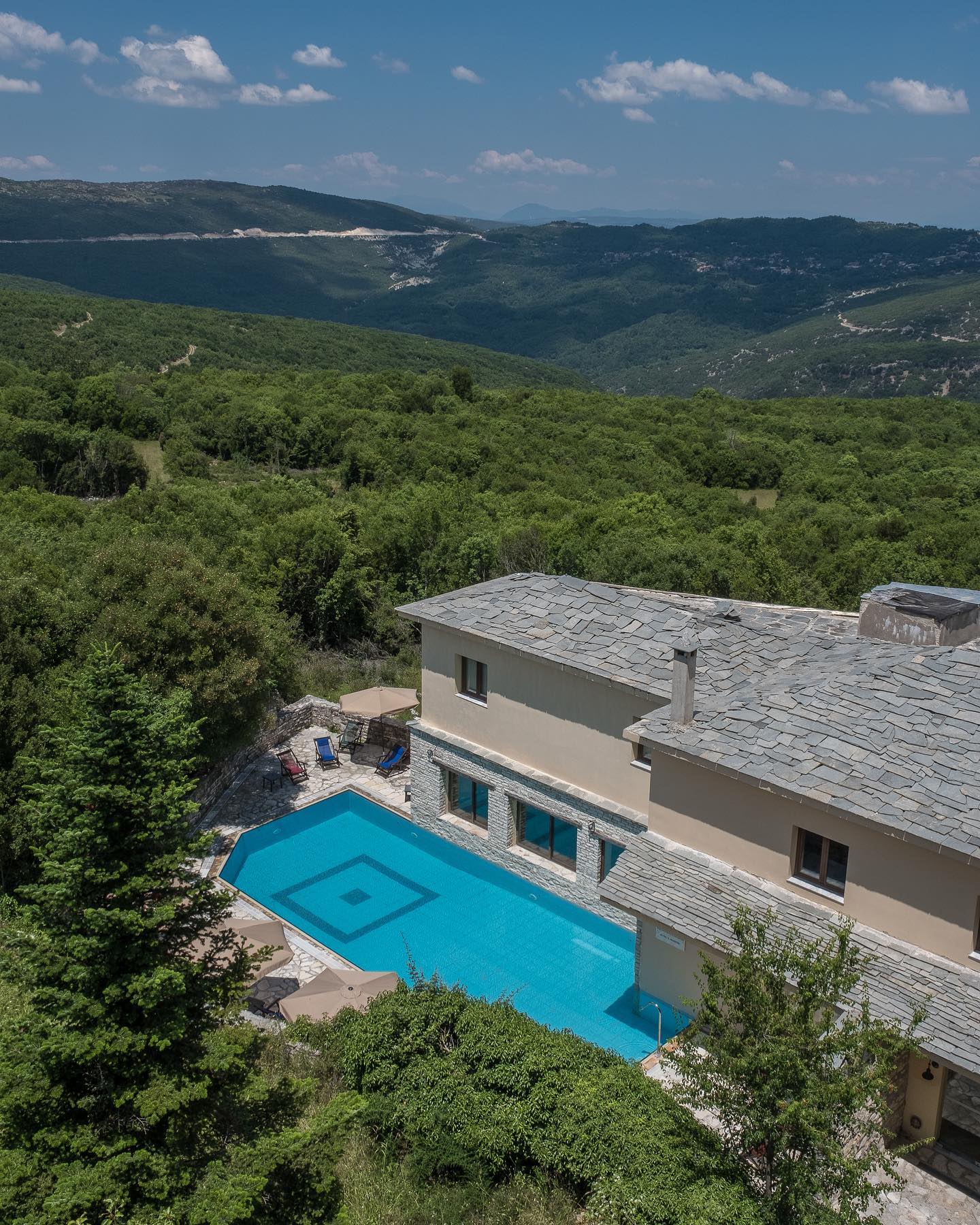 Located in Pramanta, at the foot of Stroggoula, amidst a lush forest of cedars and firs, Orizontes offers stunning views of the surrounding area. It has 12 carefully decorated rooms that reflect the character of the region. The hotel’s restaurant serves both traditional and modern flavors, with ingredients sourced locally. The hotel also features a wellness center with a heated pool offering impressive views of the mountain slopes, as well as a gym, sauna, and hammam.