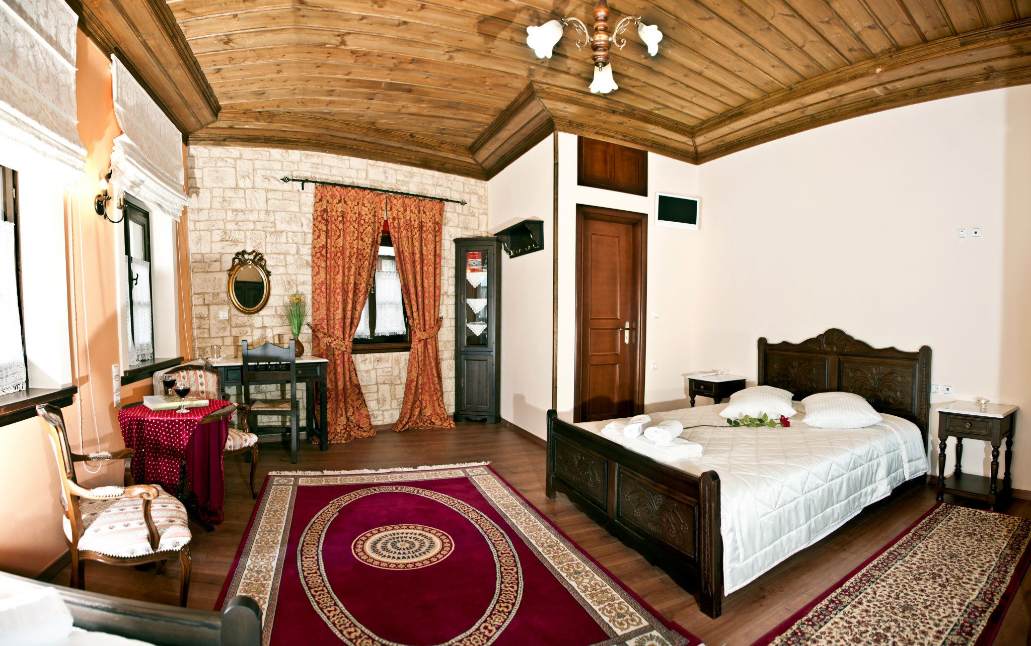 A traditional guesthouse with eight rooms, located next to the Gkoura spring in the center of the Syrrako village, near the main square and the ancient plane trees. Stavraetos is a two-story stone mansion with ornate wooden ceilings, handcrafted bronze light fixtures, fine décor with carved furniture, and a striking interplay of colors. It successfully combines tradition with comfort and luxury. The breakfast is prepared with great care, featuring mouth-watering honeyed pancakes, steaming trahanas, fresh farm eggs, butter, yogurt, freshly baked cakes, homemade jams, local honey, and village pies.