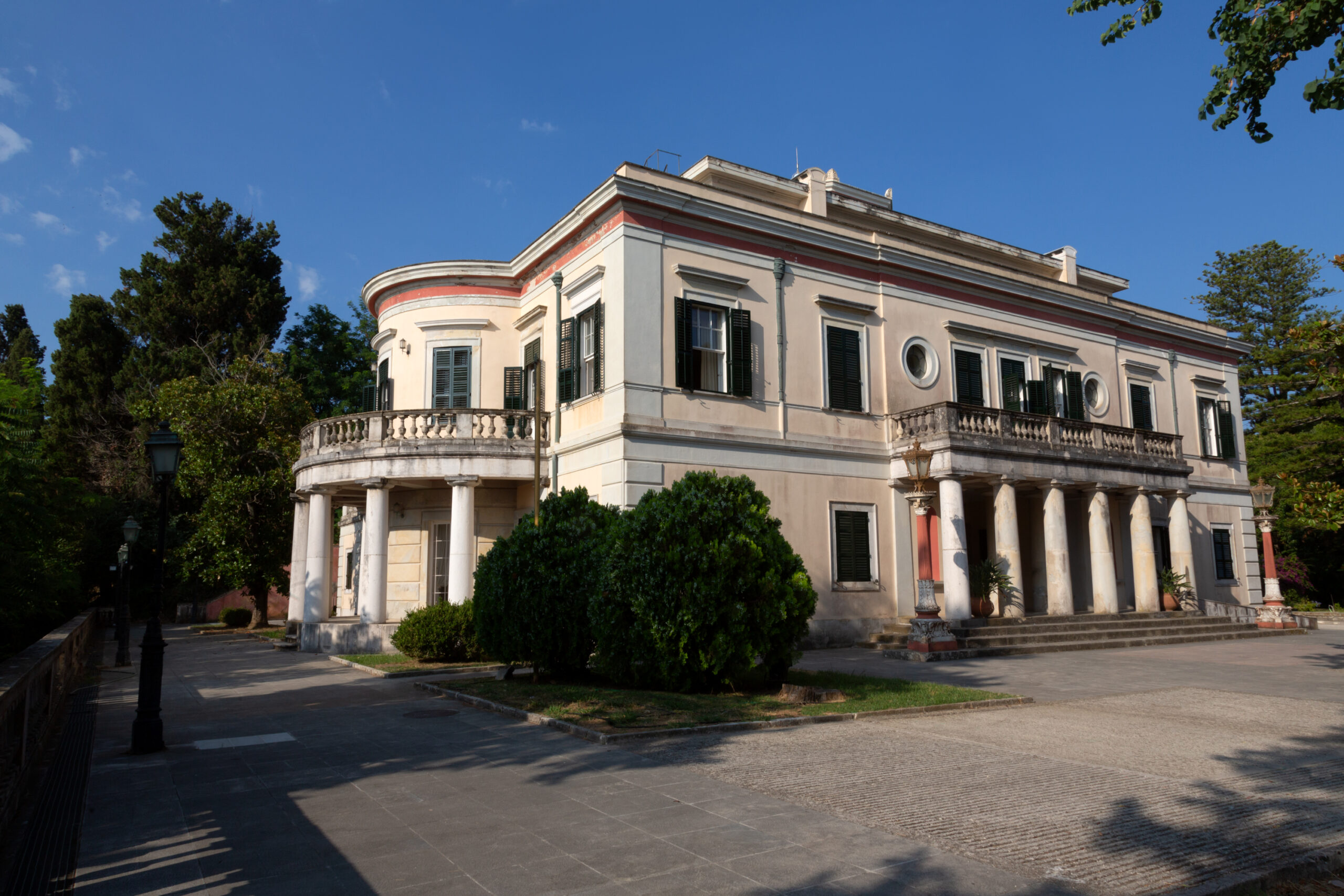 The truly unforgettable part of the visit to Mon Repos is its “outdoors” – truly vast gardens, designed according to 19th-century aesthetics and style, created to offer the mansion’s residents immediate contact with nature, like an organic extension of the house. Beautiful flowering trees and an abundance of flowers have been planted around the palace, providing tranquillity for those who would enjoy their view from the house. Moving further away, the scenery changes, resembling a wild forest with laurels, strawberry trees, oaks, some tropical species, and trunks of a huge diameter that look like awe-inspiring sculptures. It was the best final impression of our short yet greatly rewarding visit.