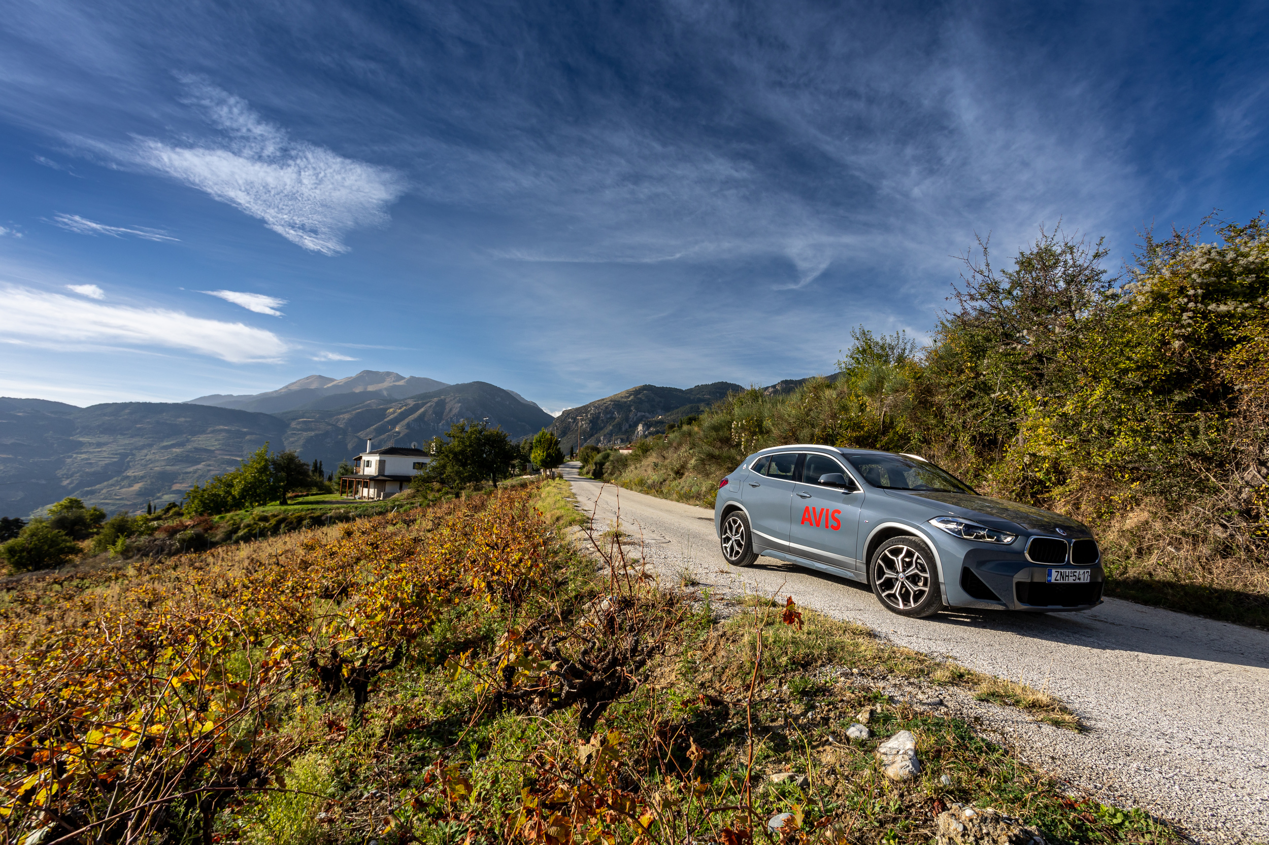 The Corinth-Patras motorway is remarkably comfortable for driving. With little traffic, we crossed Xylokastro in just over an hour and began our ascent to Ziria, following signs for Trikala. Initially, the road was narrow and the asphalt was in poor condition. However, the BMW’s excellent handling made driving a breeze. The journey became more interesting as winding turns revealed the beauty and diversity of Greek nature. At lower altitudes, greenery from pine and eucalyptus trees dominates. Just before Trikala, vineyards unfolded before us, loaded with the region’s famous product, the Corinthian raisin.