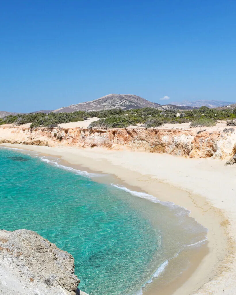The last stop on this route is Panermos Beach (or Panormos). To reach it from Moutsouna, follow a mostly coastal route along the eastern shore of Naxos. This area lacks the tourist development and crowds of the west, which permitted us to appreciate the island’s wild beauty. The road passes by the prehistoric acropolis that once dominated eastern Naxos. Panermos is a small, sheltered cove on the southeastern part of the island. We admired the impressive palm trees that almost touched the Aegean waters. We were 54 kilometers from Naxos Town and several hundred kilometers from Attica, but the beach felt like it belonged on a tropical island. A late-afternoon swim with views of Koufonisia and Keros was the perfect way to end our short excursion.