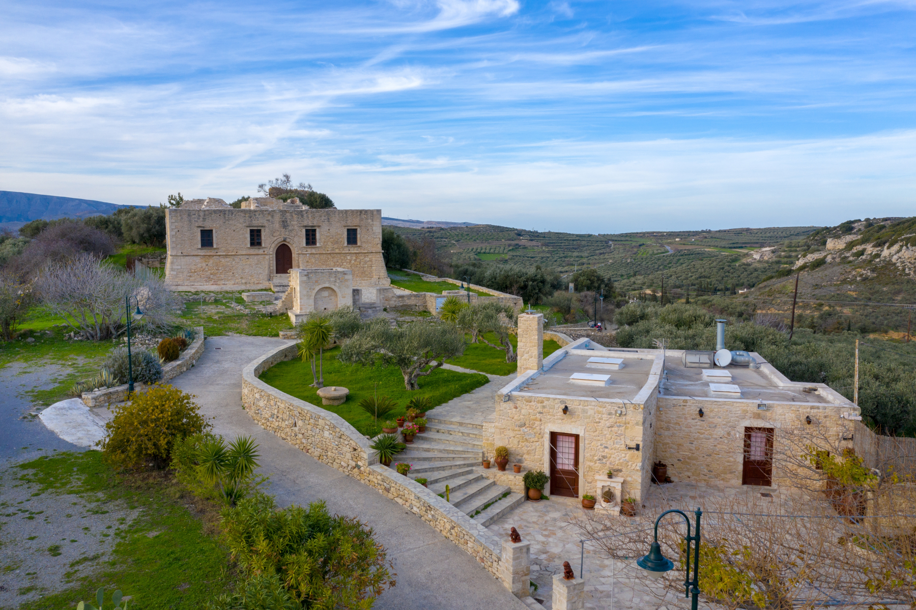 Ziros, Voila, and the Etiá mansion: Renowned for its post-Byzantine churches, such as Agios Nikolaos and Agia Paraskevi, the capital of Ziros (or Zirou) plateau’s fruitful landscape is an inviting destination, particularly if you plan to visit the Economou winery. Located near the village of Handras, the ruined medieval village of Voila is set atop a hill. Here, you can appreciate the three-story tower, Voila’s steadfast stone sentinel, with its impressive stonework. Close to Voila, you’ll find the deserted village of Etiá, home to a mansion known in maps as De Mezzo. However, locals persist in referring to it by its Turkish epithet, “Seragio Mansion.” Constructed in the 15th century by the influential De Mezzo family from Sitia, this mansion is one of the most significant surviving Venetian monuments in the Cretan countryside. After the departure of the Venetians from Crete, it served as the residence of the area’s Turkish leaders.