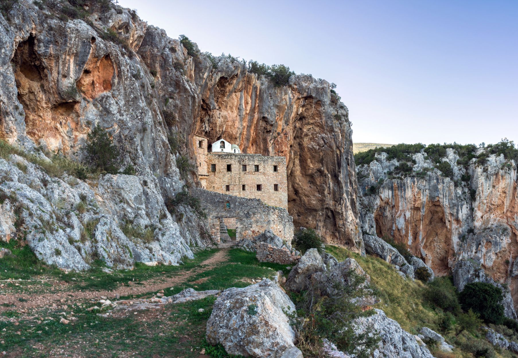 About 40 minutes from Porto Heli lies the Monastery of Dimitrios Avgou. Although we had to drive through a rough dirt road to reach it, the car we rented served us well. The monastery is built in a region of stunning beauty, located in a steep gorge of the Rados River. There isn’t much confirmed information about the monastery’s history since, like most monasteries in the then-Greek territory, it was closed by decree during the reign of King Otto in 1834, and its archives were destroyed. What is certain is that the excavated building appears imposing to visitors, and the view from the now-abandoned sancutuary towards the Iria valley and its coast is impressive.