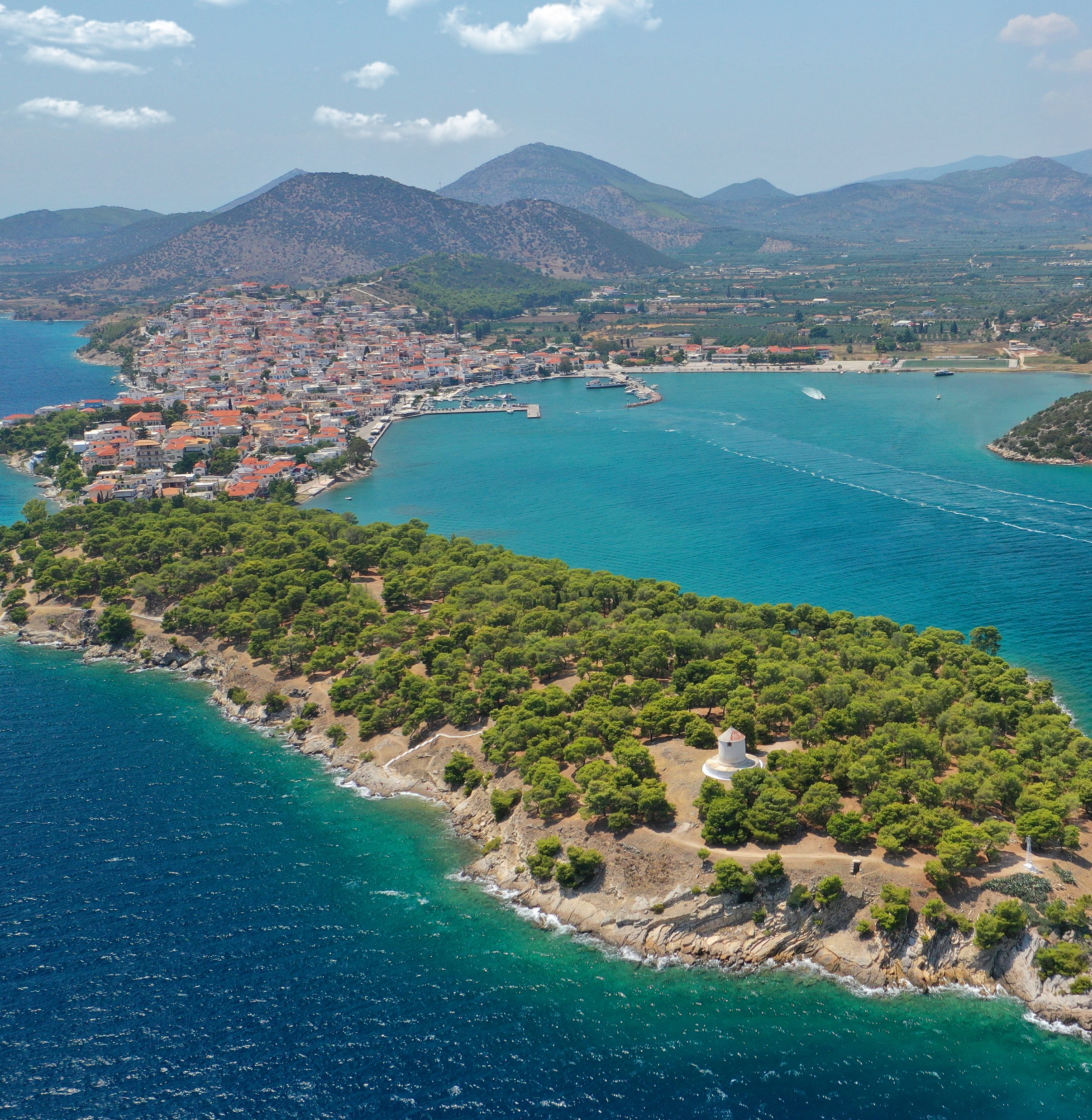 Ermioni, located on a pine-covered narrow peninsula that juts sharply into the sea, genuinely feels like an island paradise. Its unique geographical position blesses the town with two coastal fronts. At the settlement’s tip, one might think they’re aboard a ship, with the sea on both sides. Our accommodation was situated in this idyllic destination, where the fact that we arrived by car, rather than a ferry, seemed almost surprising. The island atmosphere is palpable, characterized by white houses, narrow alleys, and a marina where small fishing boats coexist with yachts and sailboats. The region’s gastronomic delights include fresh fish and seafood, as well as a unique local specialty: pomegranates.