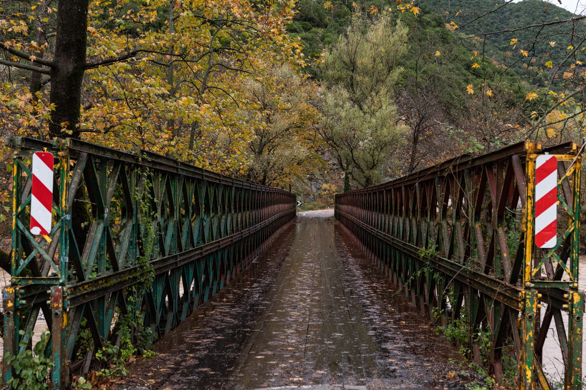 Starting out from Karpenisi, we headed off to the lake, through a landscape of unique beauty and a fun, challenging drive on windy mountain roads. We reached an ear-popping 1,200 meters above sea level on mount Tymfristos, and then begins a long downhill stretch. With our sturdy SUV, we were able to enjoy the wild mountains scenery, steep gorges and deep ravines with gushing rivers. We crossed an old iron bridge over the river Megdova and we had to stop to take some snaps of this cool old bridge, also taking the oportunity to have a little rest.