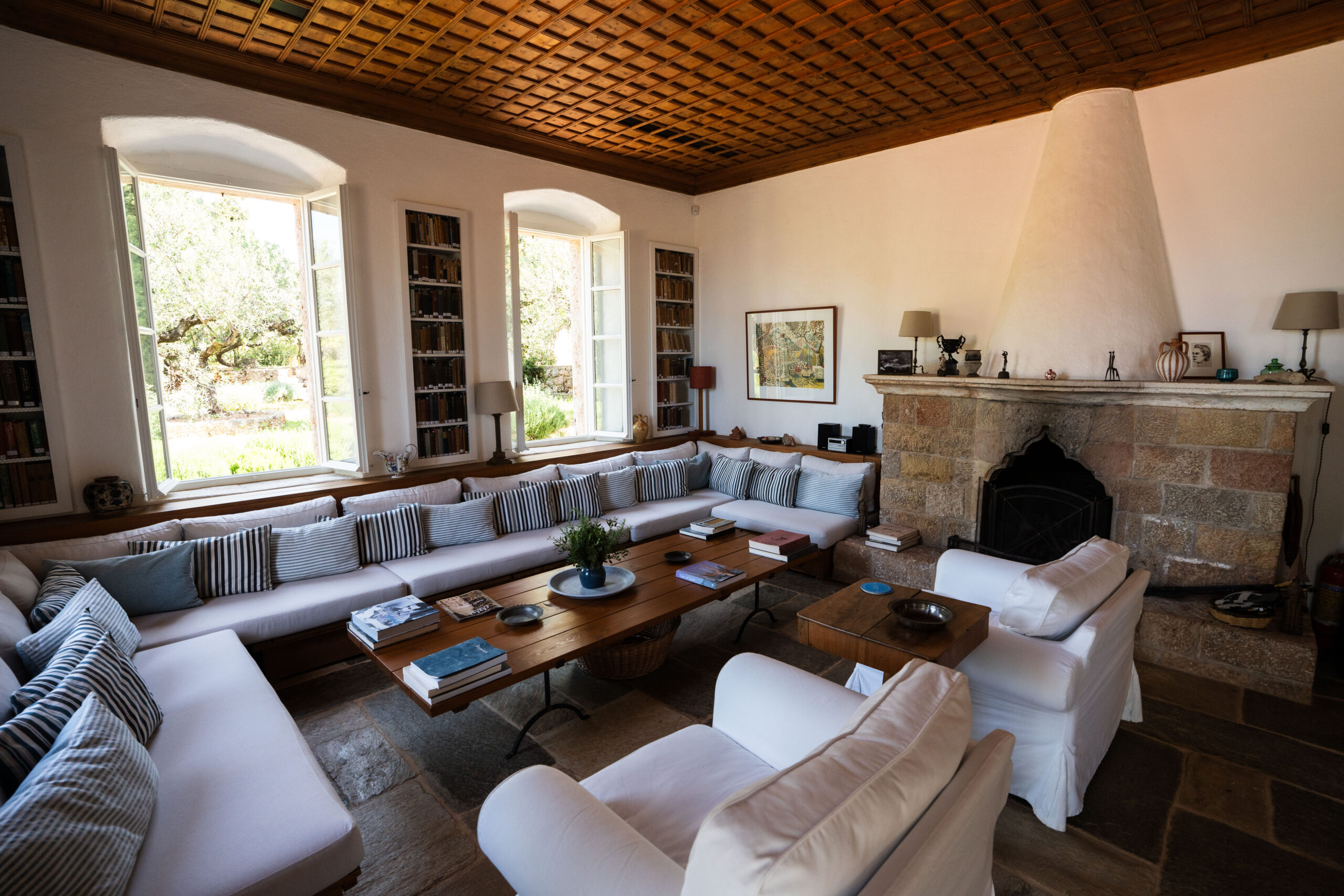 Our journey’s exploratory character was sealed with a visit to the home of the globally acclaimed traveler, travel writer, and philhellene, Patrick Leigh Fermor. A Greek war hero in the Second World War who dedicated two of his notable literary works entirely to Greece, specifically to Roumeli and Mani, he is an adored figure among Greeks and not only. Fermor chose the Messenian Mani as the place where he chose to settle with his wife, in a well-hidden, densely vegetated location outside Kardamyli. He built his house in the 1960s, and there he wrote many more books and lived a joyful life, with regular accomplished guests coming from around the world to see him. After his death, the property was bequeathed to the Benaki Museum and renovated in a way that preserves its aesthetic. It opens a few days a week for the public to admire both the building, synonymous with the authenticity of its creators, and the enchanting view.
