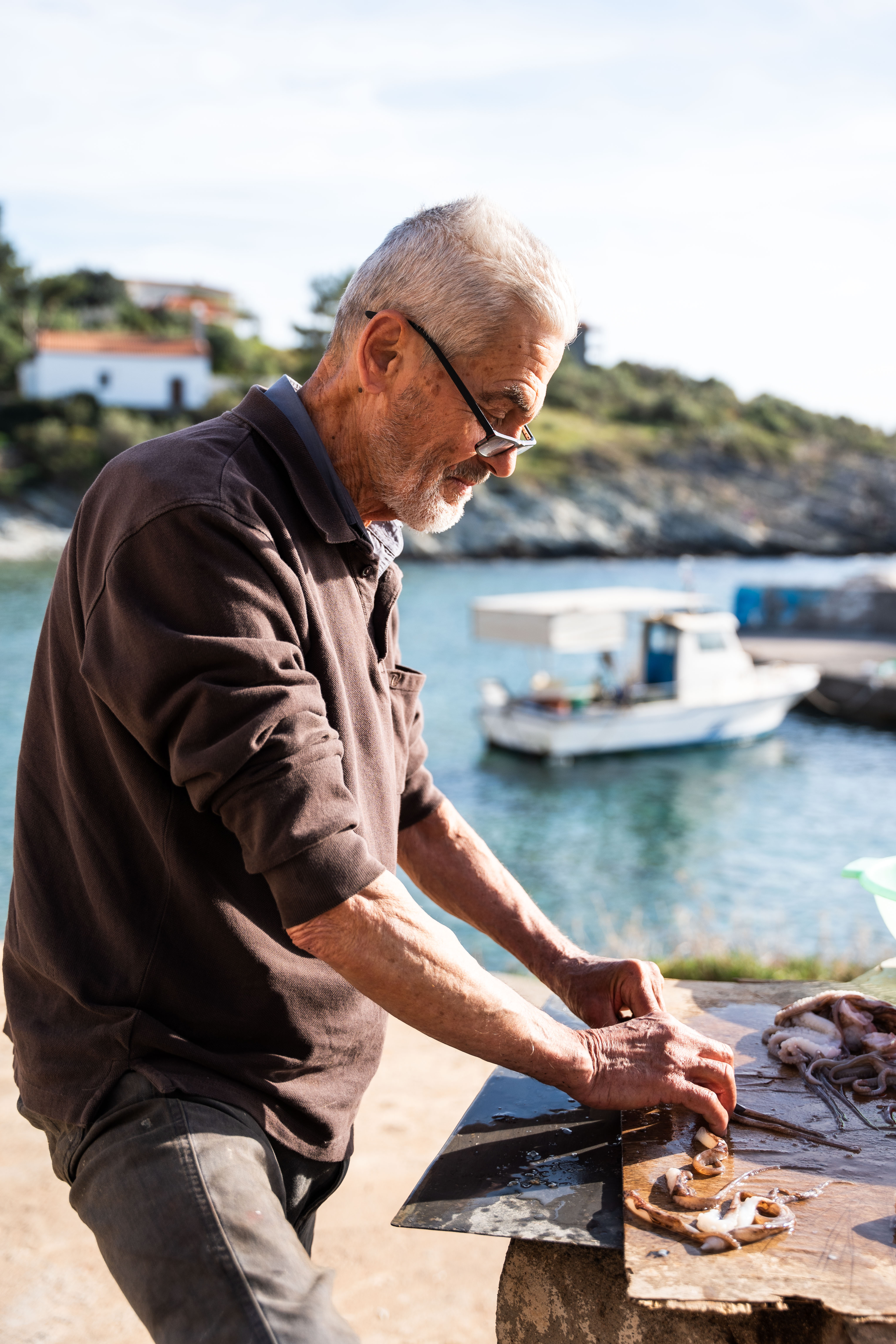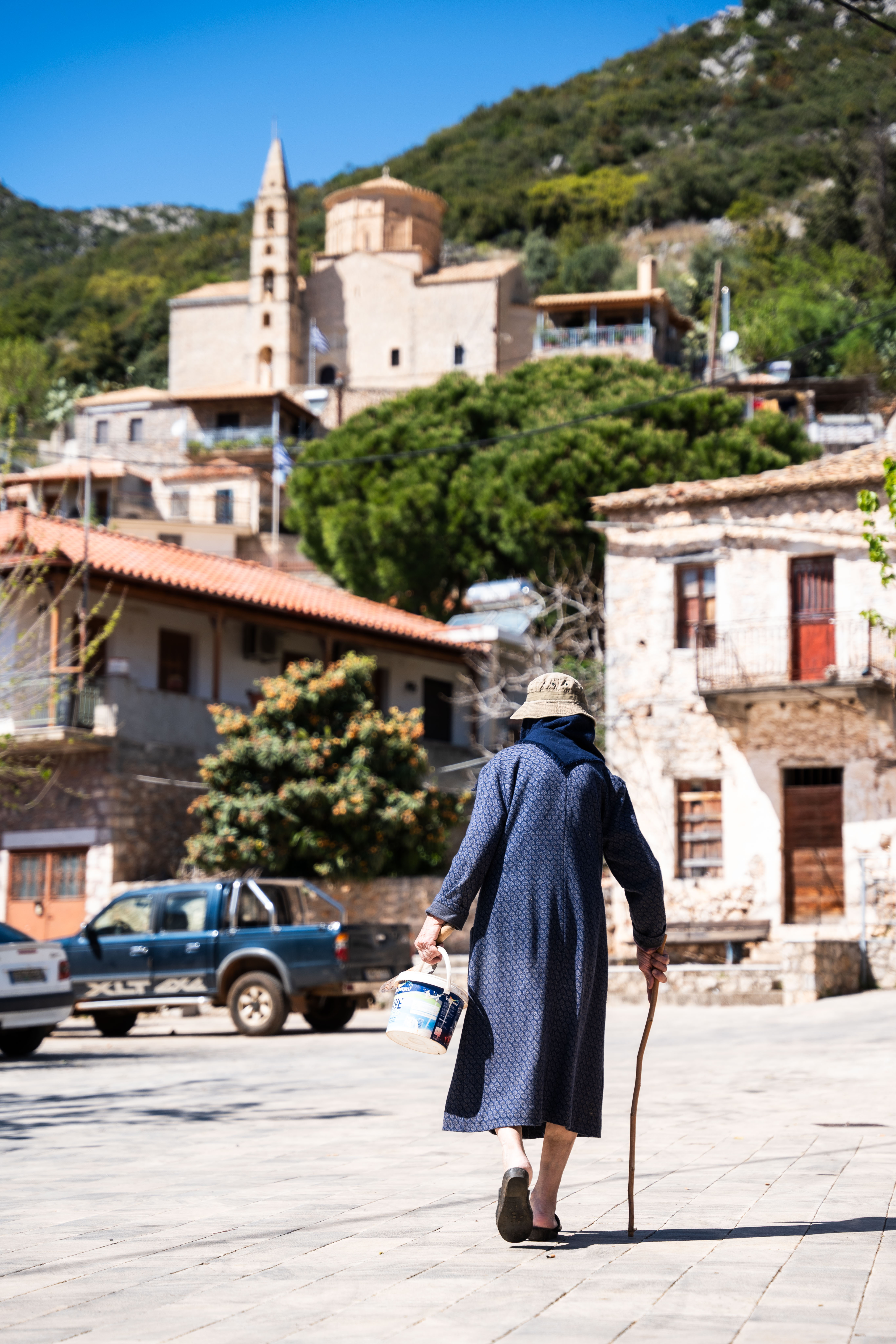 Descending from the mountain, we made a brief stop in the village of Prosilio, where we recorded another stone tower as part of our historical exploratory route. The amphitheatrical position of the village with the horizon of the sea in sight fuelled our eagerness to get to our next stop, the seaside village of Kardamyli, which is divided into Old and New.