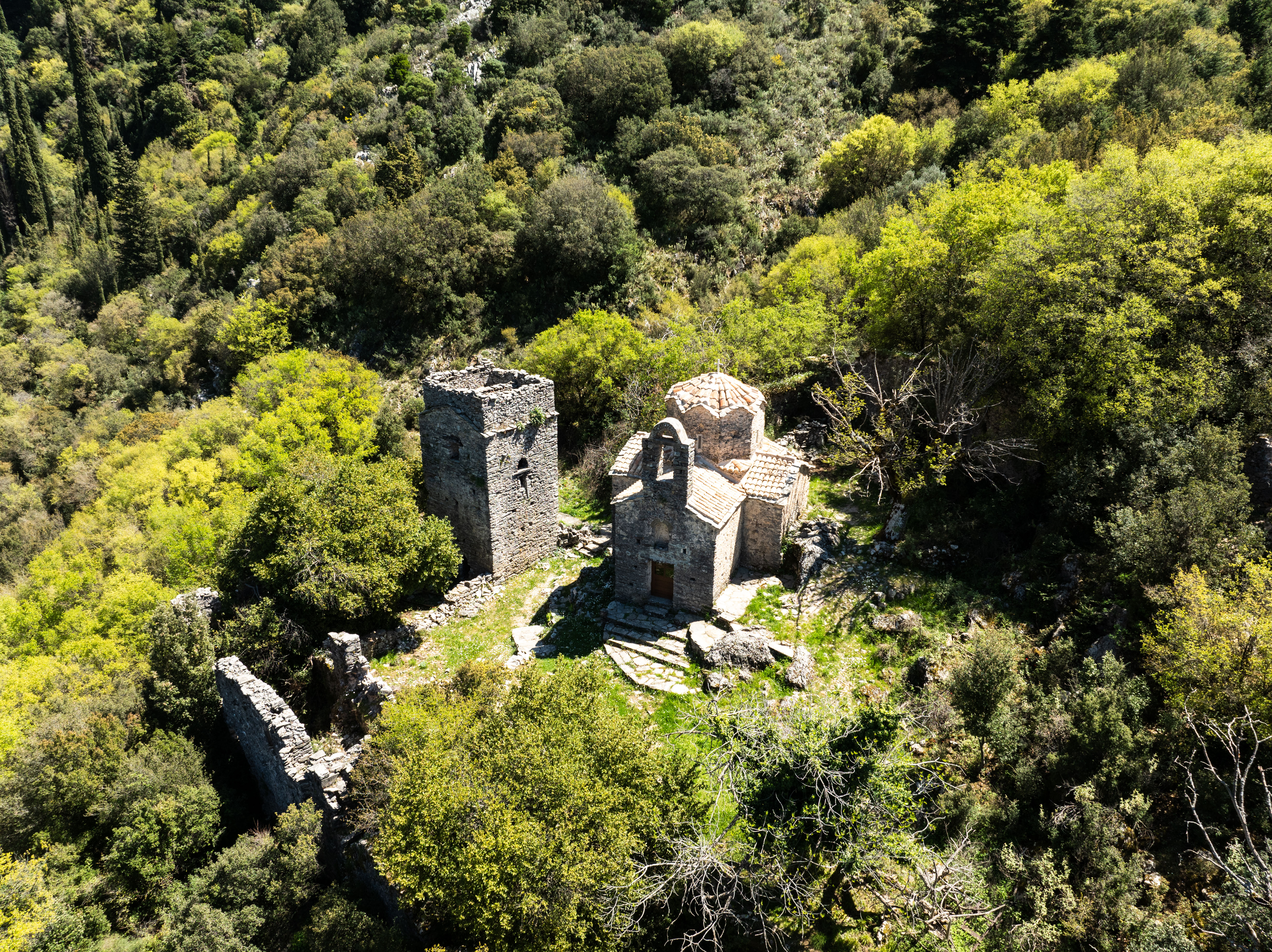 Having reached an altitude of over 1000 meters, we suddenly felt a unique sense of freedom, release, and rejuvenation. We were solitary travelers enjoying the thrilling sights of nature, characterized by rich vegetation and the overlapping peaks of Taygetus stretching infinitely to the horizon, seemingly reaching the peninsula’s edge. The sequence of images and emotions induced inner peace.