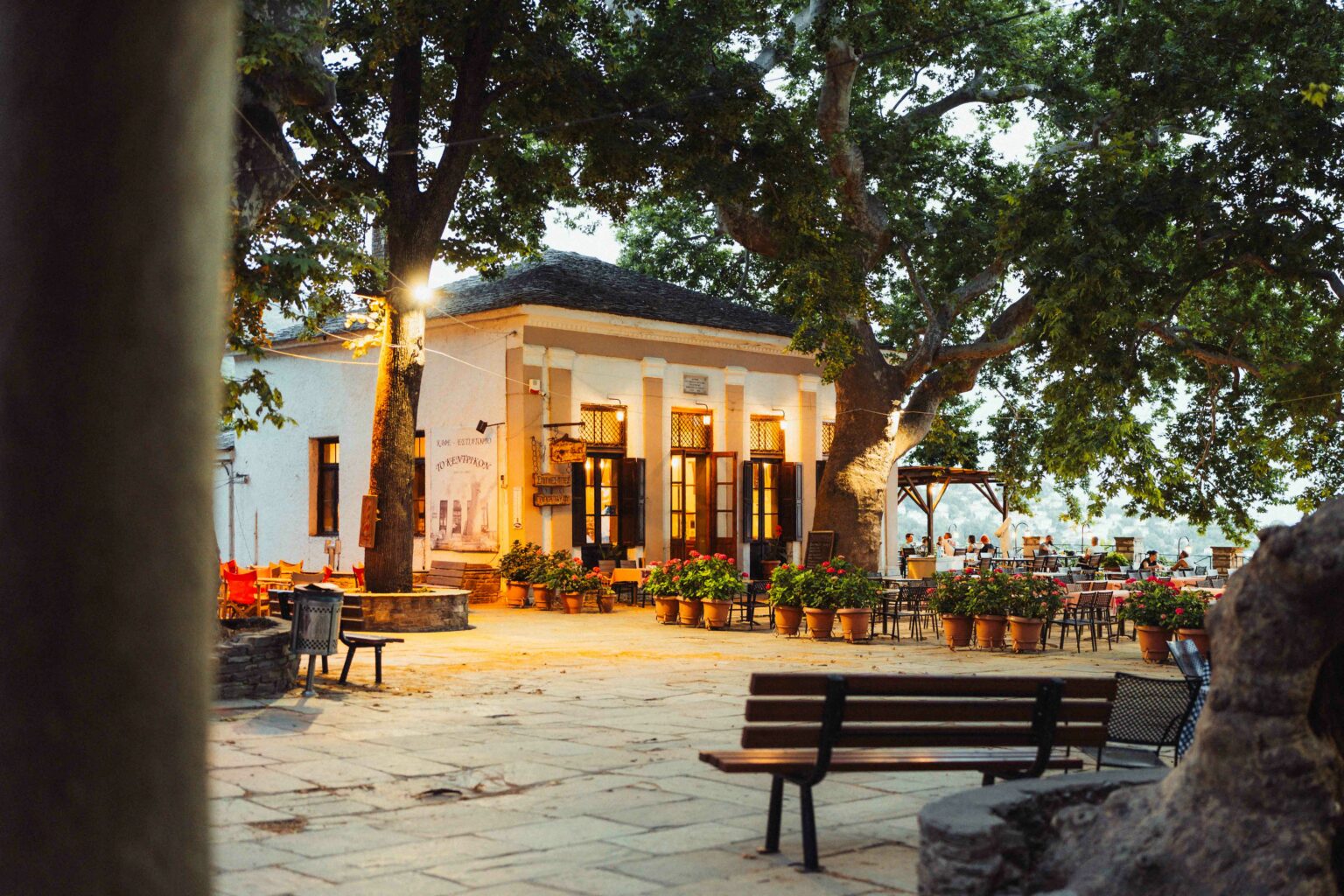 In a good mood, we walked along the stone paved paths, admiring the vastness of the village, the traditional Pelion architecture and the size and quality of the villas, which, as we were told, testify to the economic and cultural development of the village, especially during the 18th century. From the main road we made our way to the central square with its impressive large plane trees, the church of St. John the Baptist built in 1806 and the marble fountain. Due to its breathtaking view of Volos and the Pagasetic Gulf, this square is also known as the “Balcony of Pelion”. As the sun set, the colors of the sky combined with the invigorating coolness to create an ideal end to the first day of our road trip.