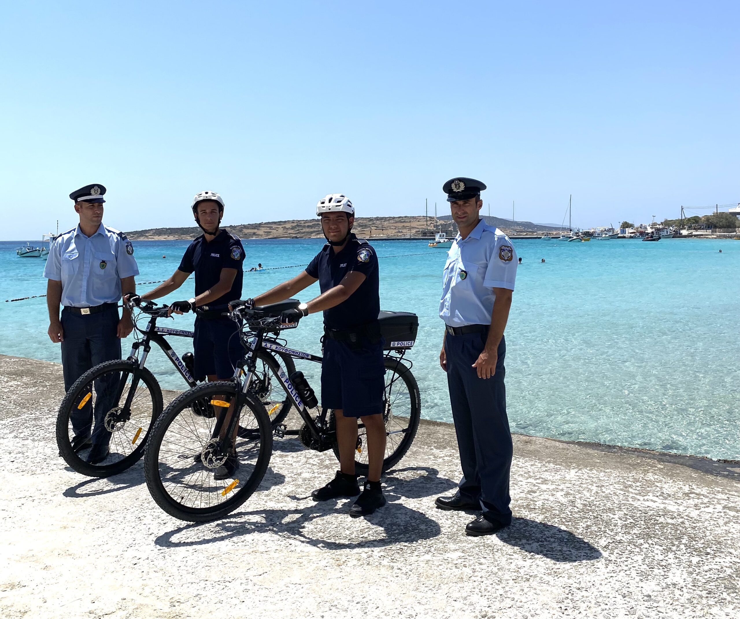 Koufonissia were once the ultimate alternative tourism destination. Much has since changed. The tourism inflow has risen spectacularly and is not just alternative or camping-dominated. Even so, Ano Koufonissi, the inhabited of the two Koufonissia islands, can take pride in a new alternative and pioneering strategy, its introduction of police officers on electric bicycles.