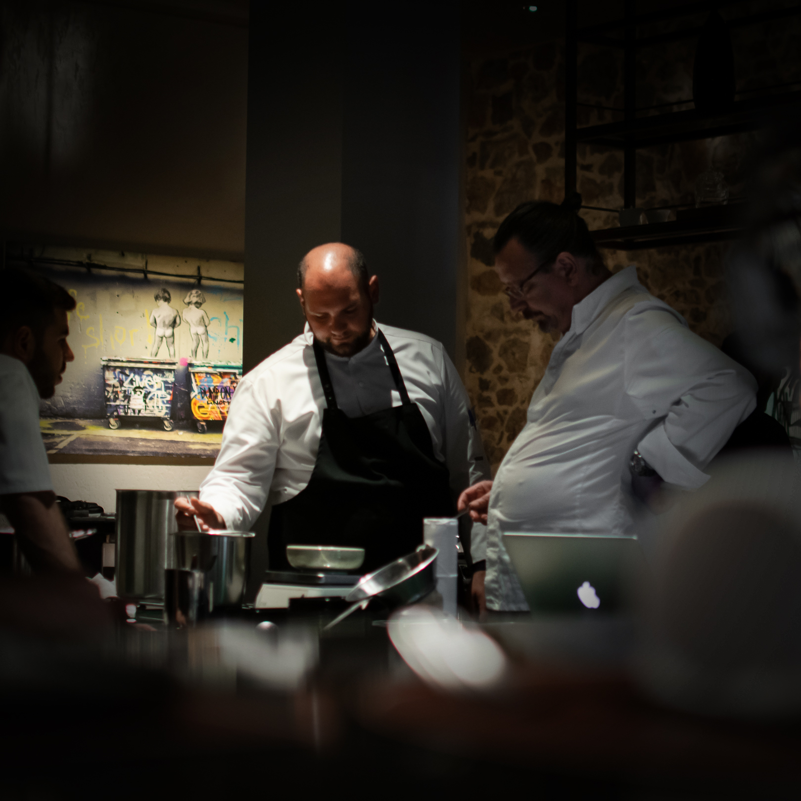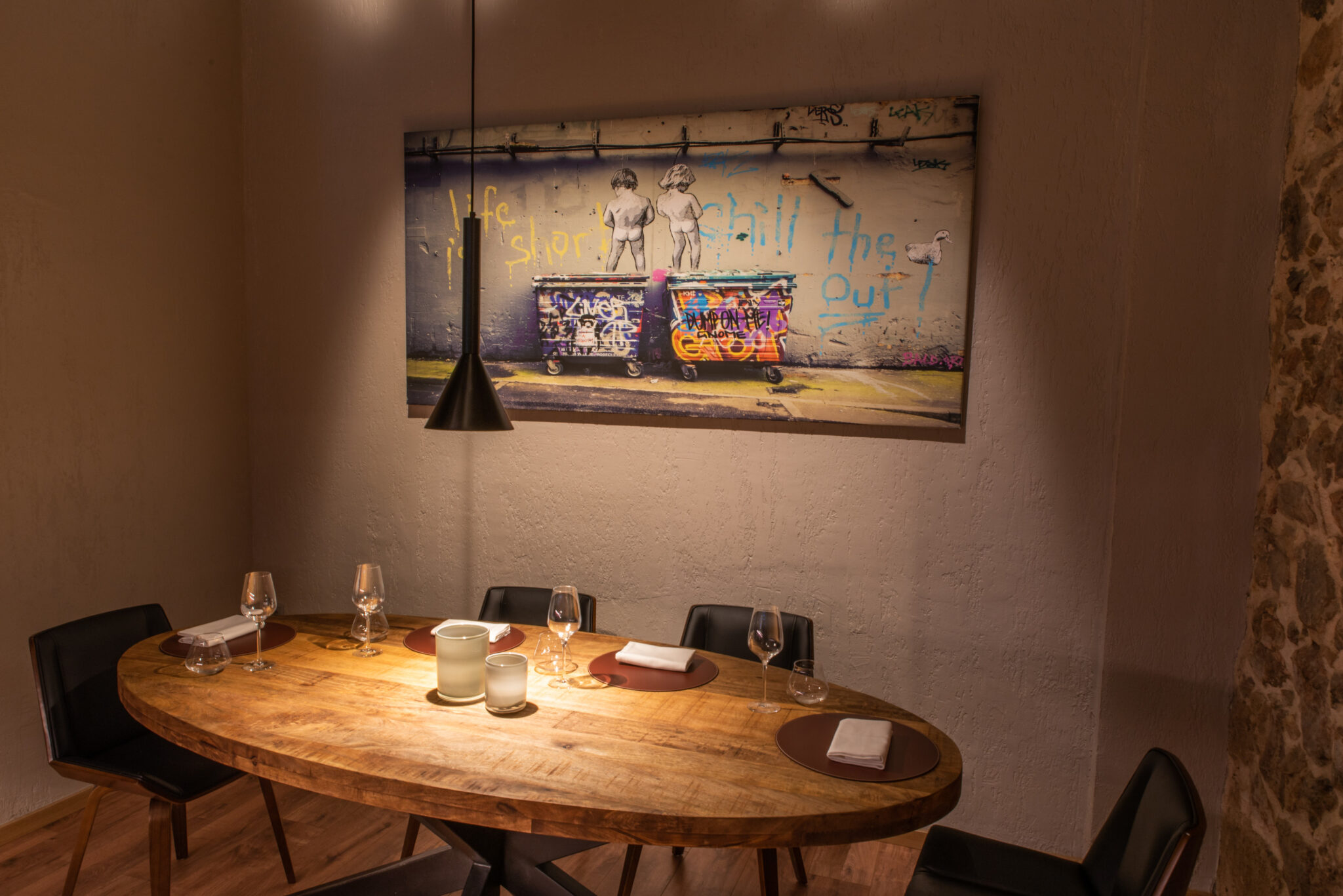 In terms of the decor and ambience, I love street art, which is why I have artworks by Banksy and Wall Street – and I like to create contrast between fine dining and more casual vibes. I don’t like the classic stiff, pretentious style of fine dining restaurants, with waiters dressed like penguins, and in summer people can even come here in their bermudas.