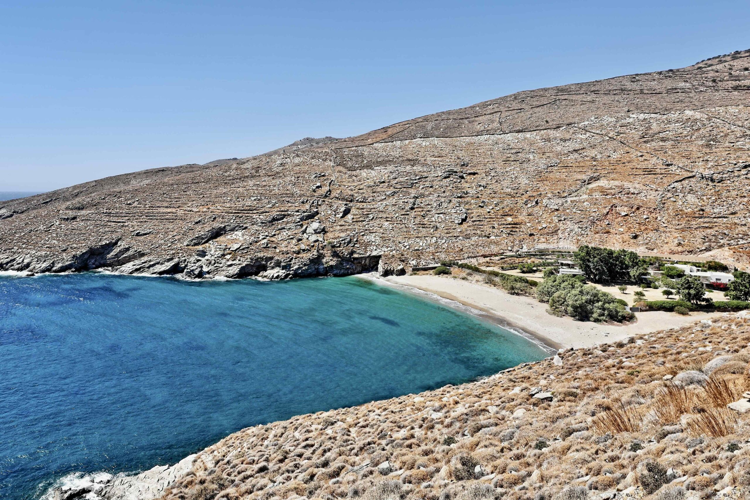 Two slim crescents – one mostly sand, the other a blend of pebbles – lie on either side of the rocky promontory crowned by the ancient city of Karthaia. Reaching them requires a forty-five-minute walk or a short boat ride, and that effort keeps the crowds away. Swimming beneath the temple columns lends the water a curious sense of ceremony; the past feels present in every echoing splash. When the climb back calls, pause by the little church of Panagia ton Polo, where the breeze cools sun-warmed skin and the view stretches unbroken to the horizon.