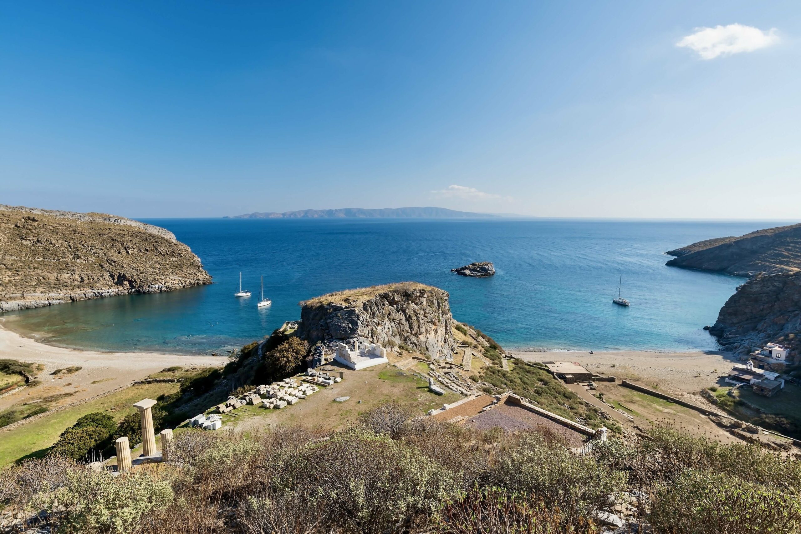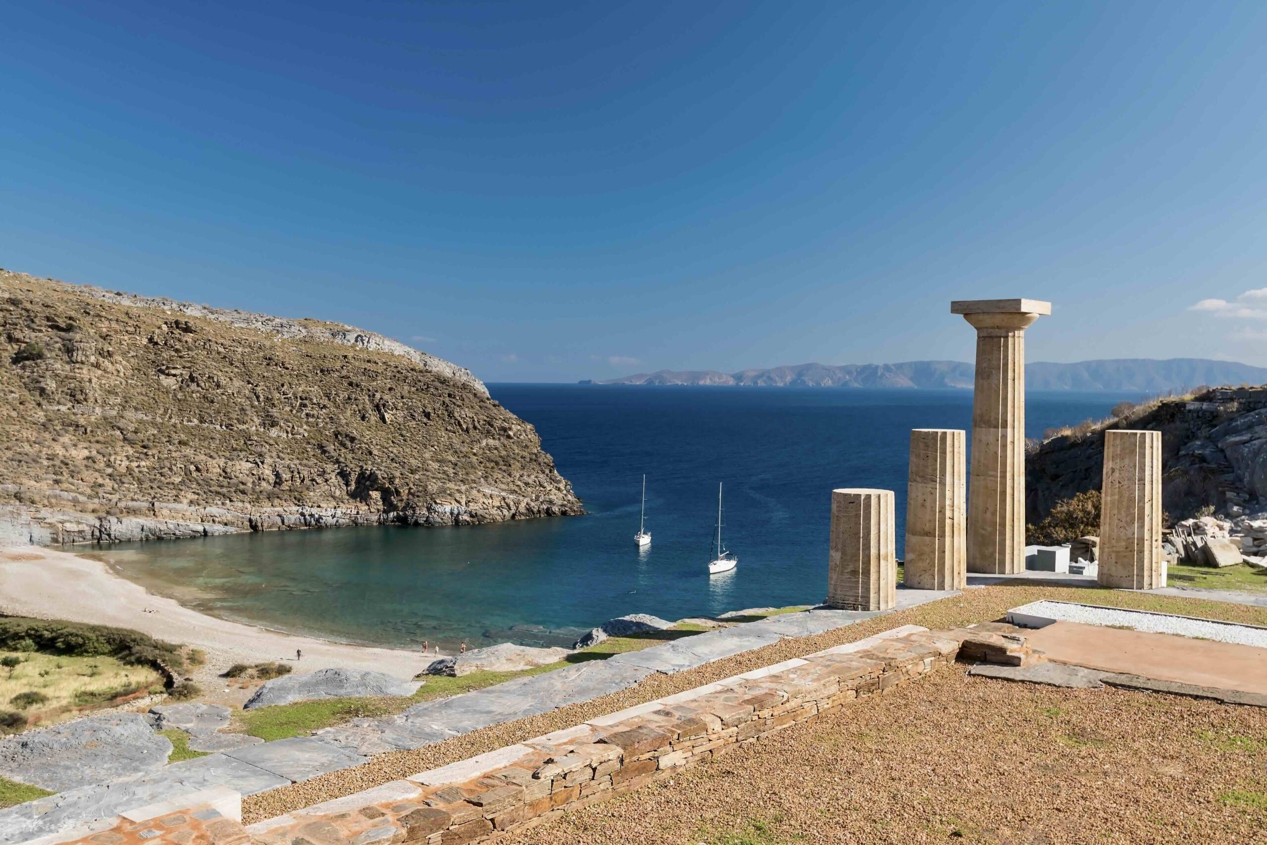 Four-thousand-year-old Doric columns rise from scrub and thyme like time-traveling totems. Hike 45 minutes down a goat track or glide in by boat, then picnic amid marble ruins with amphitheater acoustics for the crashing surf.