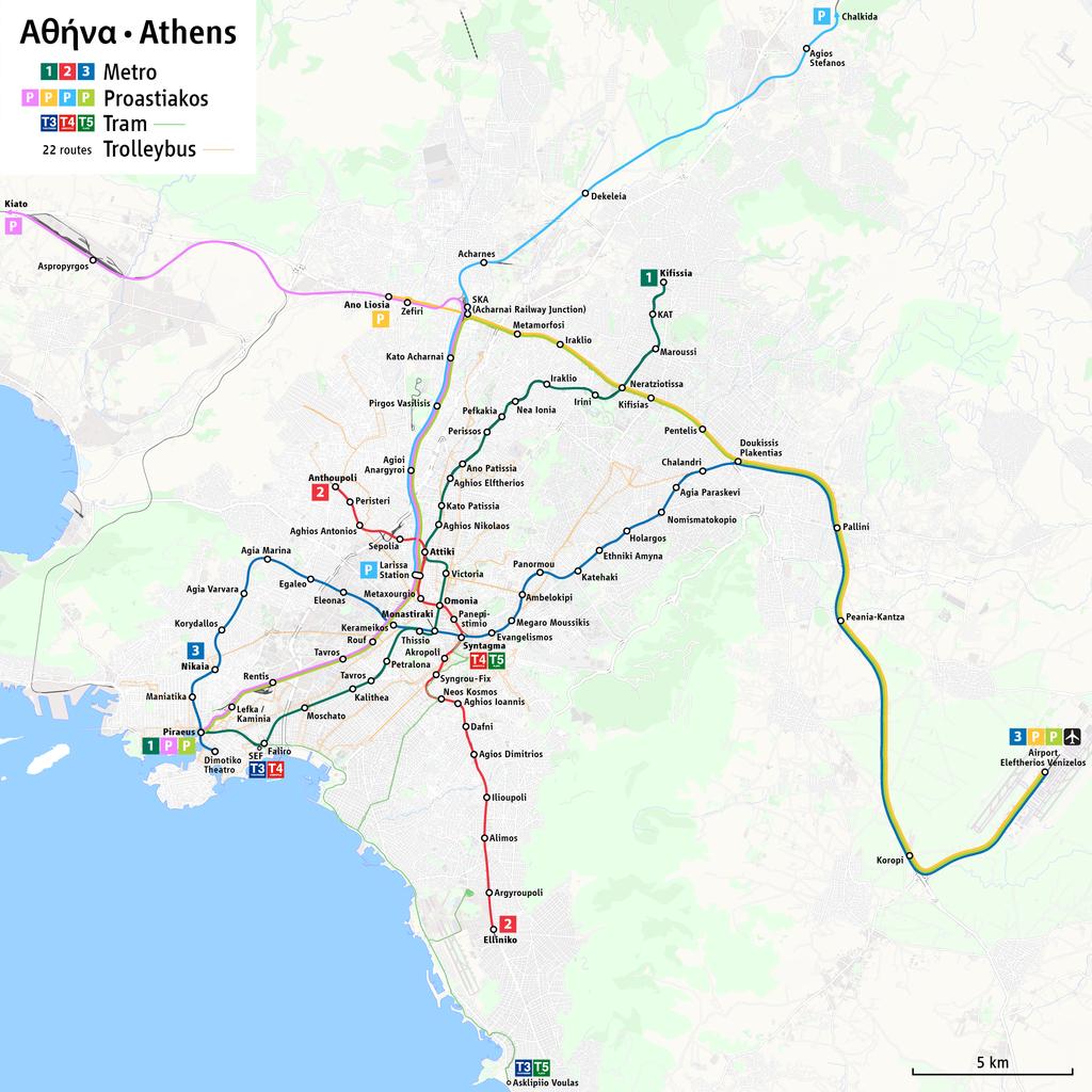 Public transport tickets in Athens are valid for buses, trolleybuses, metro, tram, and the commuter train with in the capital