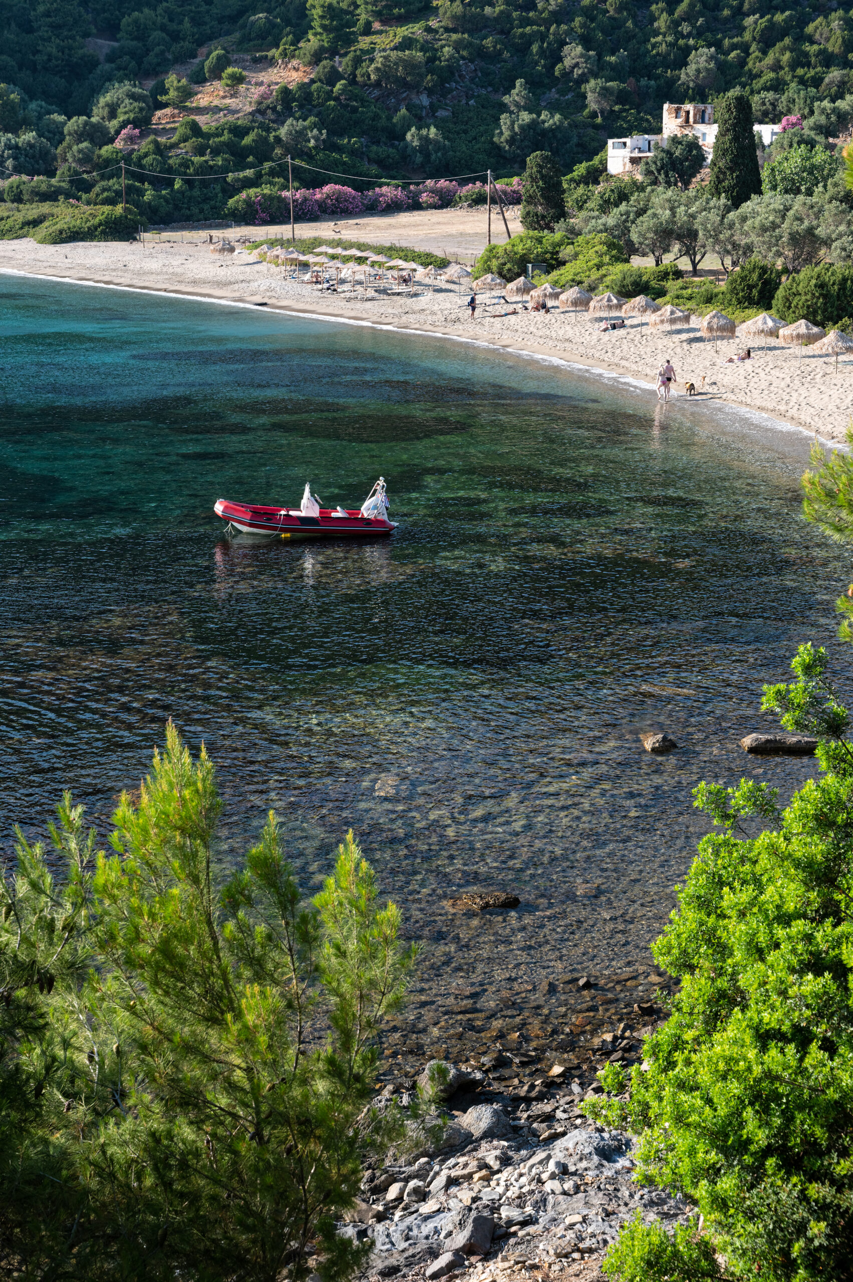 The area of Aspous consists of a curvy bay, a scenic sandy beach, the neighbouring Achilli bay and the verdant countryside extending to the west. In the two bays, sea crows are a common sight. Less frequently, a few eagles pass through searching for food and a place to rest. Lonely kingfishers, sandpipers as well as cormorants show up from time to time on the rocks or the small pier of Achilli.
