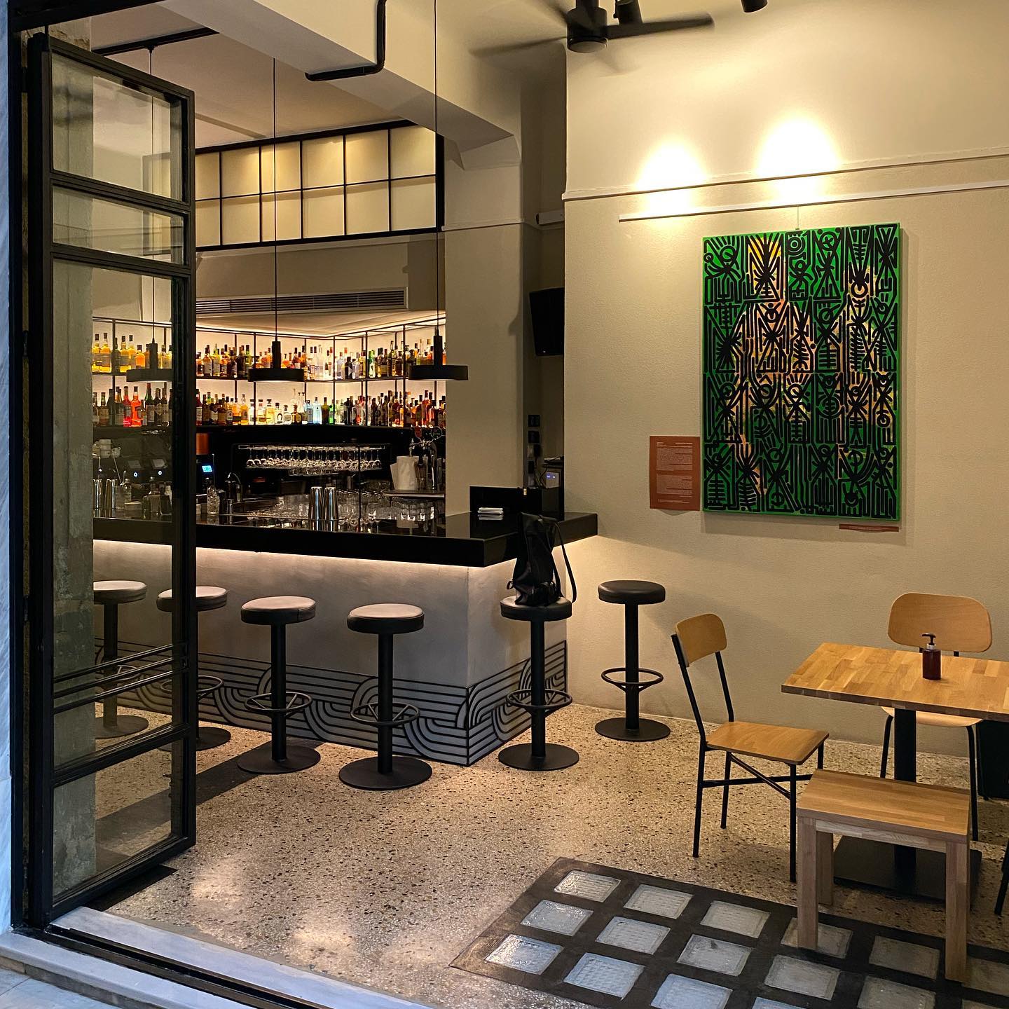 Agape Athens: (21-23 Herakleidon Street, Thiseio) New, stylishly designed, for wine, brunch, coffee, and food. Cellar with 110 selected labels.